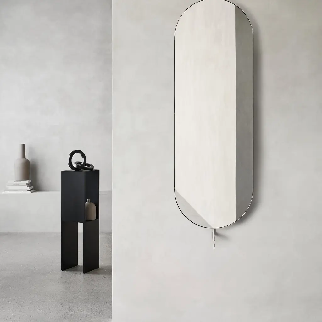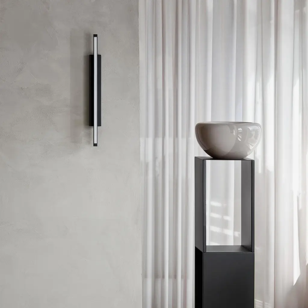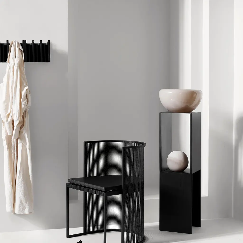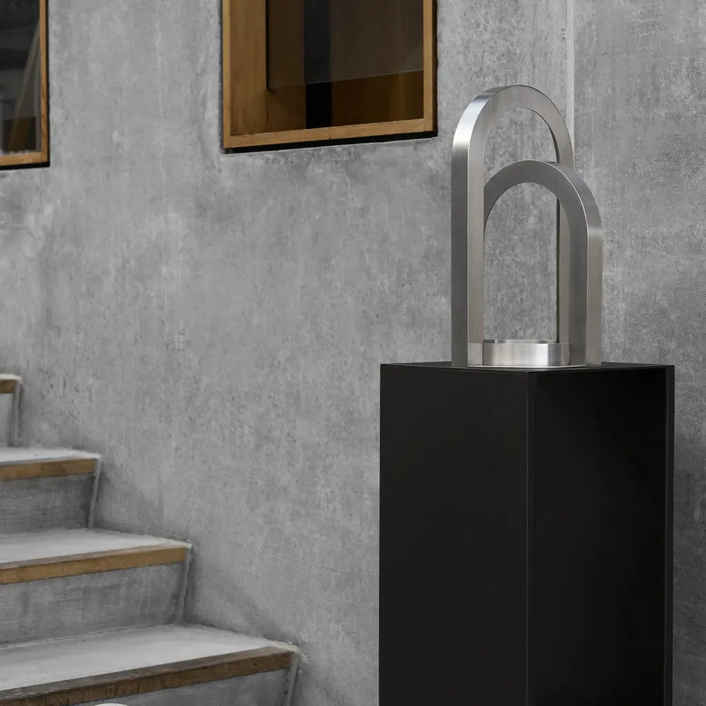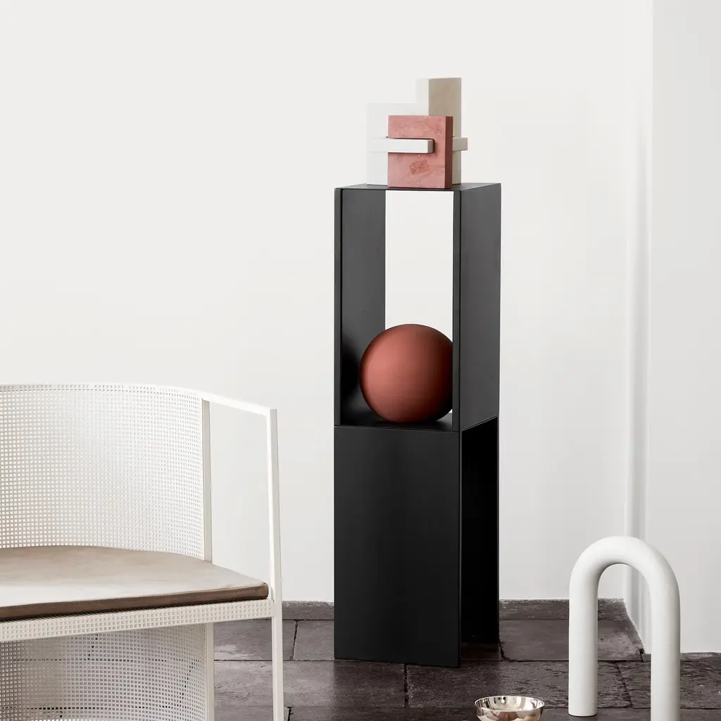 A tall, 40.2-inch pedestal-table in black powder-coated steel brings objects to eye level and gives them room to breathe. The geometry is simple: two crisp planes frame an open niche, so a vase, small sculpture, or stack of books reads clearly from every side. Edges are softly rounded to be kind to hands and fabrics; the slim footprint slips beside a sofa, in a hallway, or under a window without crowding the space. Use it as a display column with a tray on top, keep a few magazines in the niche, or pair two to anchor a long wall. Sturdy, scratch-resistant steel keeps the surface calm under everyday use, while the vertical format draws the gaze upward and out of the clutter zone.