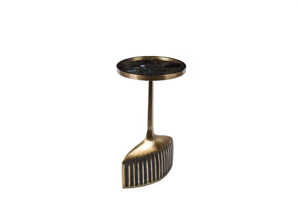 The Paris based label has distinguished themselves since their launch, with their iconic use of shagreen mixed with brass and other exotic materials. All furniture is handcrafted by skilled artisans, ultimately making each piece unique, designed in Paris and produced in the Philippines.The pedestal side table small is the perfect accent pieces due to its sleek and lightweight aesthetic. The small size is inlaid on the top surface with Lemurian Quartz and the bottom part a mixture of coal black shagreen and bronze patina brass. Available in other finishes, see images at end of slide. The option to purchase the table as nesting set is available on a separate listing. Custom color/sizing available on request.The dimensions of this piece are:S- 35.5 x 30.5 x 55 cm / 14 x 12 x 21.5''All R&Y Augousti pieces are handmade by artisans, ultimately making each piece unique. Custom color or sizing available on request. Wipe clean with soft dry cloth.Acclaimed design duo Ria & Yiouri Augousti have established themselves since the 1990s as pioneers of modern-vintage style through their luxurious Art Deco inspired collections.The Paris based label has distinguished themselves since their launch, with their iconic use of shagreen mixed with brass and other exotic materials. All furniture is handcrafted by skilled artisans, ultimately making each piece unique. All shagreen-covered items should be kept out of direct sunlight, color variants may occur on the stingray and other exotic finishes, but this showcases the Parisian label's commitment to creating authentic luxurious products using natural components. For all pieces inlaid with stone and semi-precious stones, due to the natural quality of the material color tonality and pattern placement may differ slightly per piece.