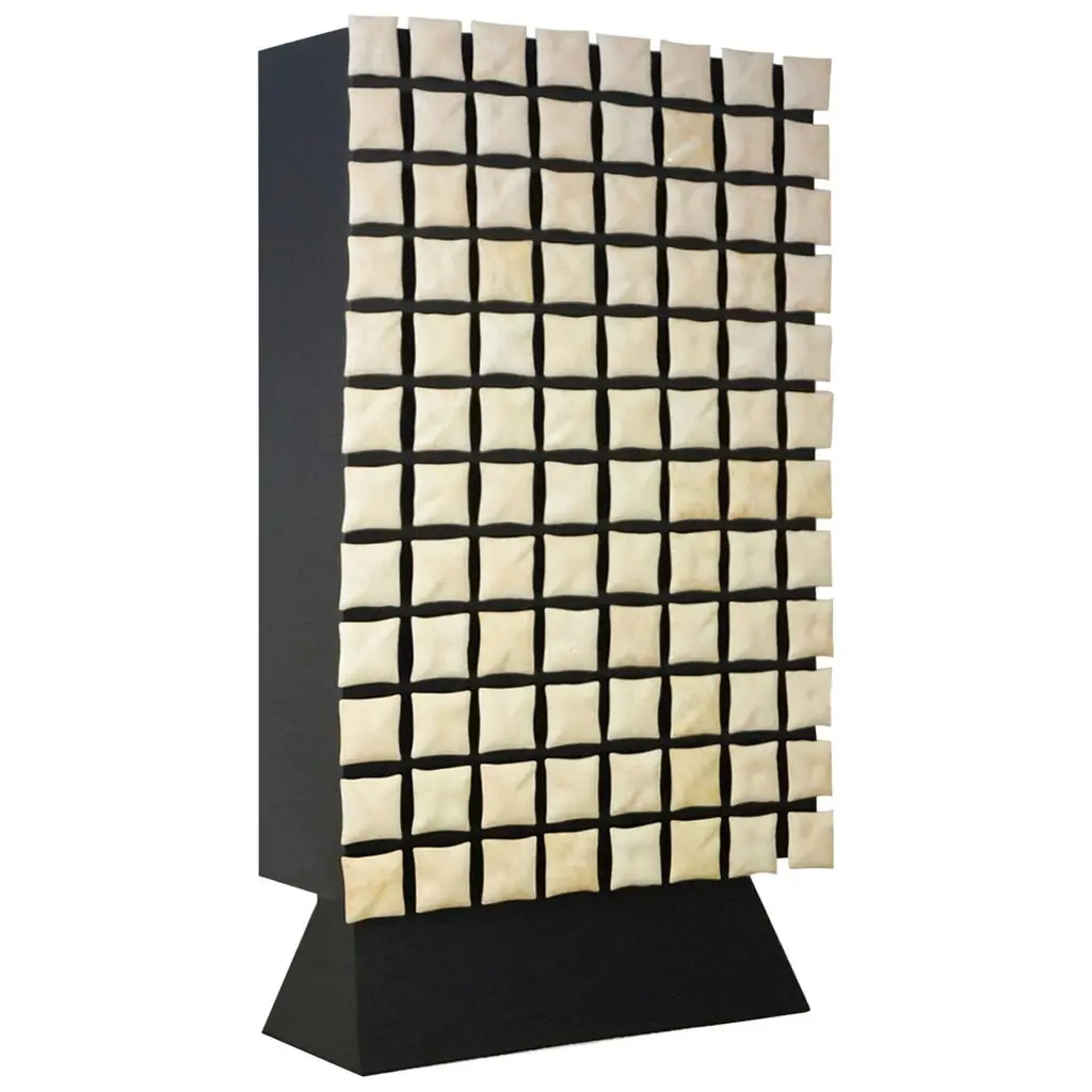 The architectural Pillar Pedestal is entirely crafted from glass fiber reinforced concrete. Adding to the tactility of the piece, grooves have been engraved into the surface of the pedestal, providing it with a beautiful pattern reminiscent of tiles. This robust pedestal serves multiple purposes, whether as an elegant plant stand, a versatile side table or an impactful nightstand.