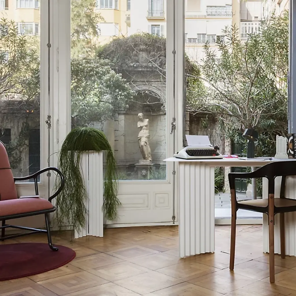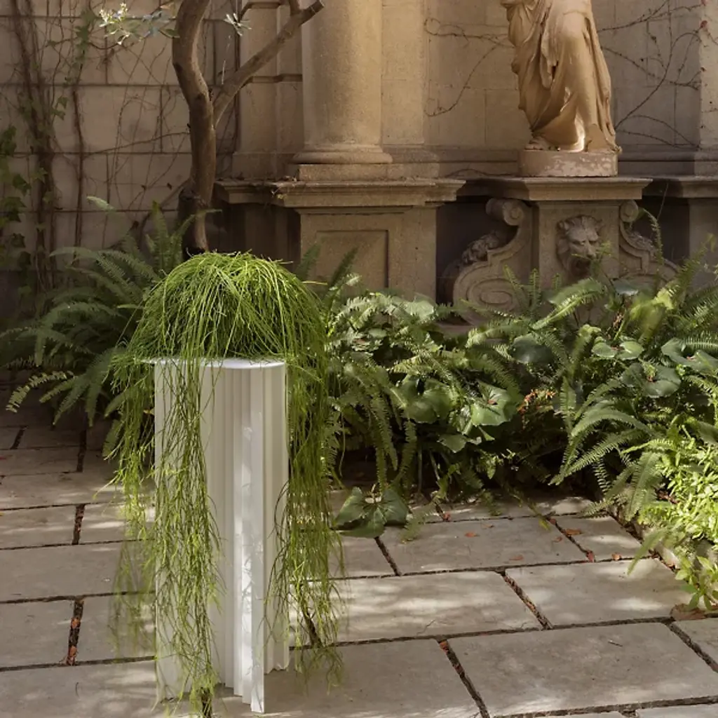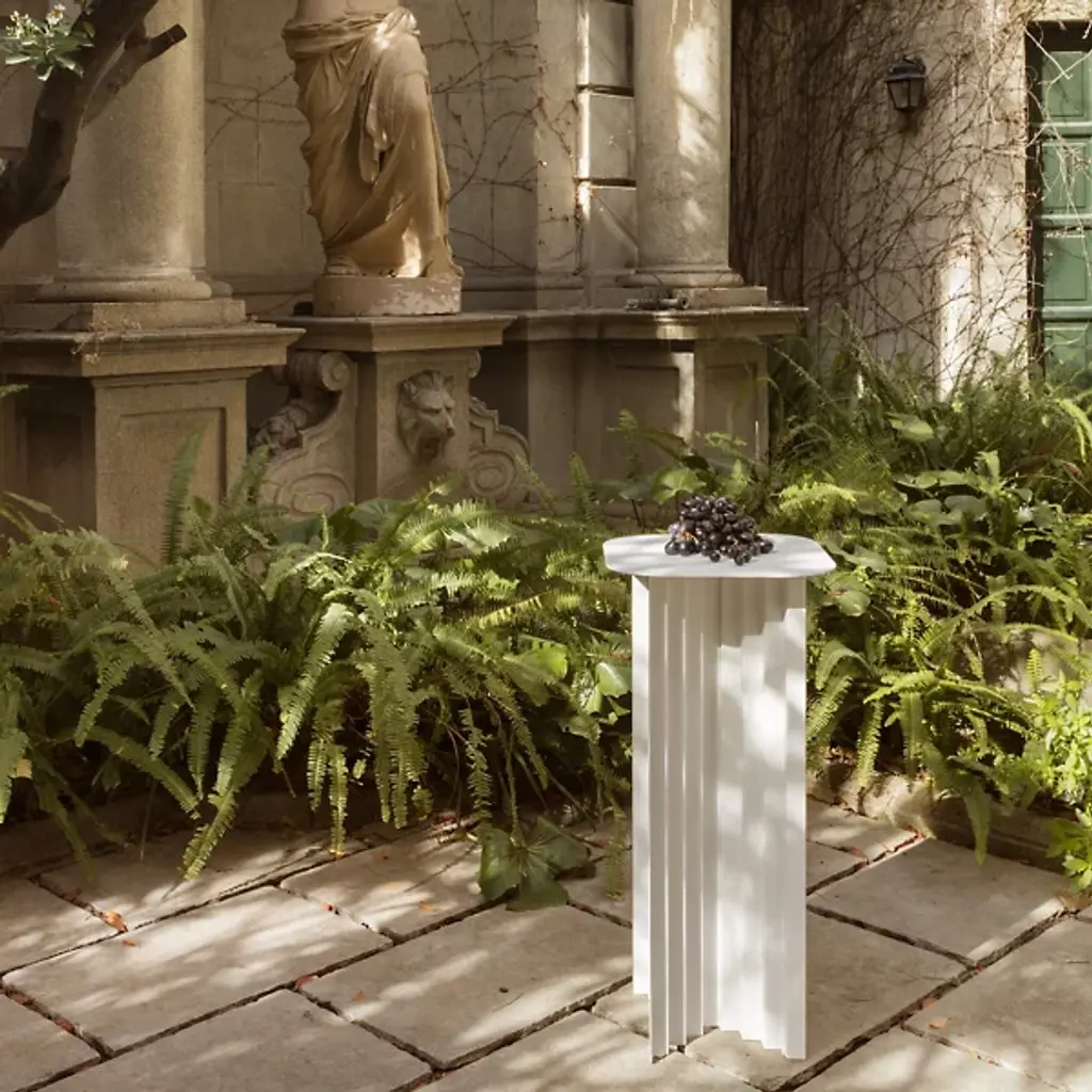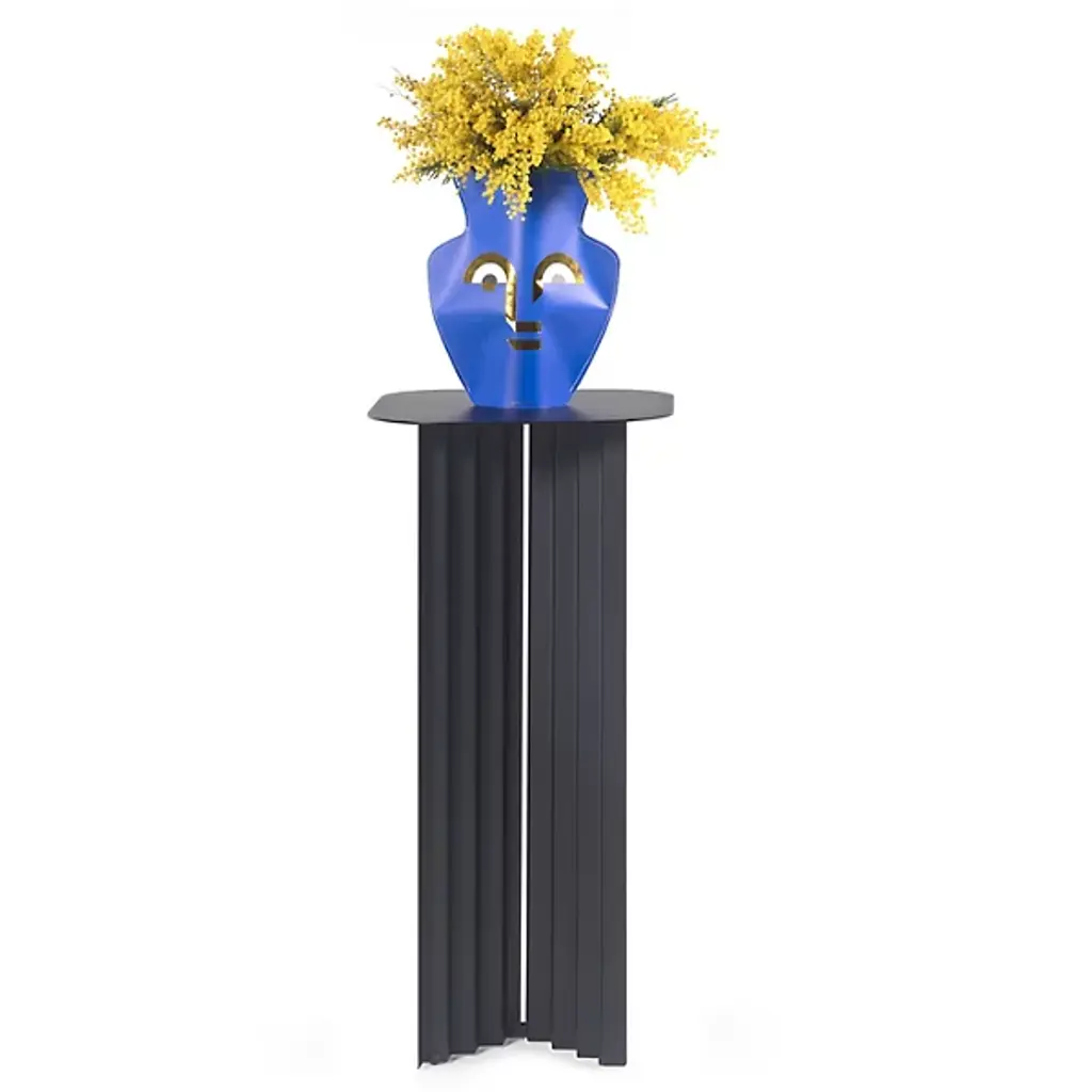 A classic reimagined. The Plec Steel Pedestal from RS Barcelona is an indoor or outdoor piece, helping you emphasize key objects with a dashing sculptural design. It's a celebration of the traditional pedestal, suggested through the accordion-like lines wrapping across the base. Emphasized by light and shadow, the lines naturally point the eyes up, making a tall floral arrangement even more visually impactful. Made from steel, the pedestal is solid, sturdy, and durable. Its steel construction makes it welcome in the living room or out on the patio.