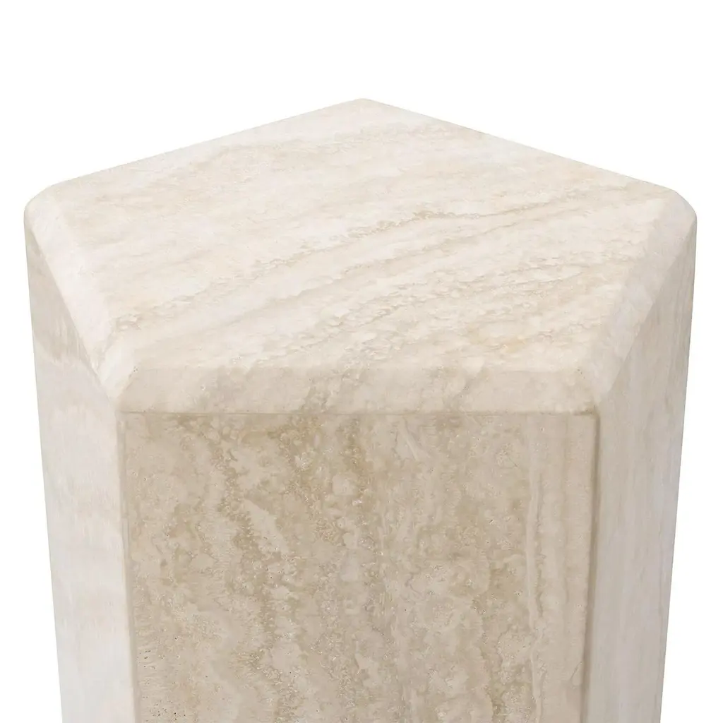 Pedestal Pretoria High all in thick carved travertine in polished finish.