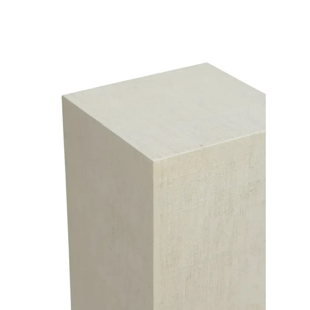 RAFFIA COVERED PEDESTAL IN WHITE, DESIGNED BY JAMIE MERIDA.
