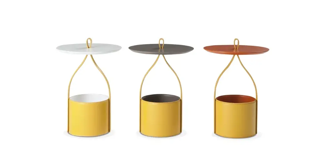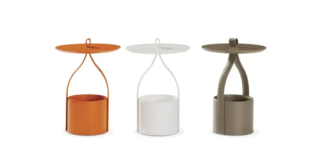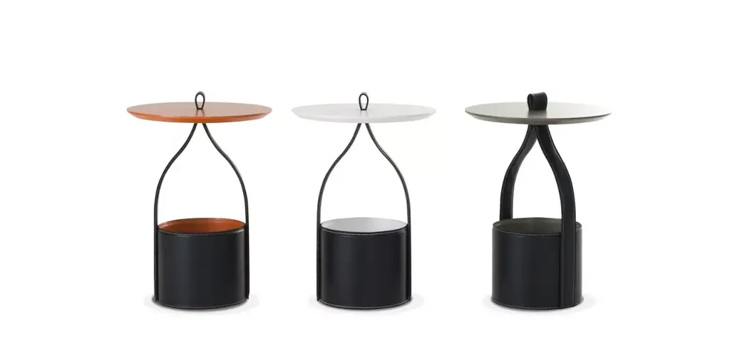 Occasional table with magazine-holder, metallic structure upholstered in split leather