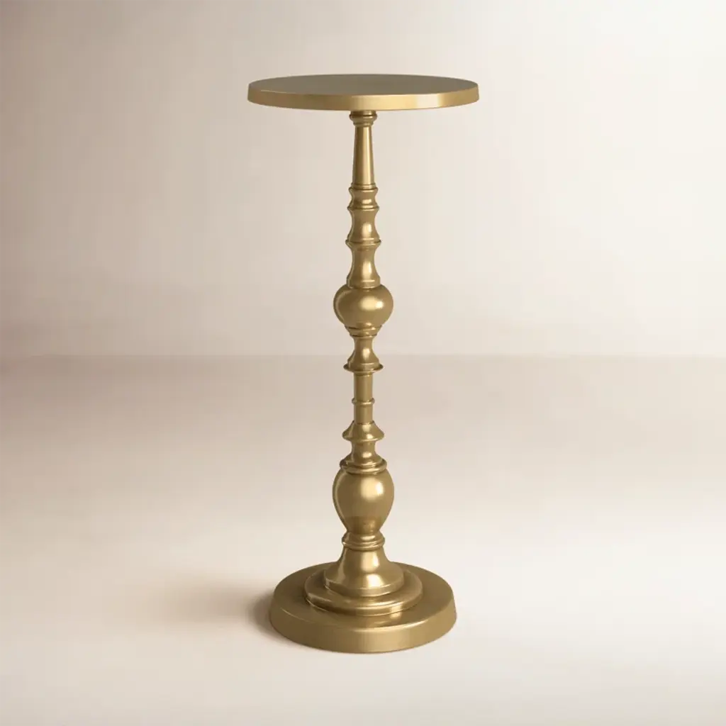 A petite piece that's big on presence, Rinna is a versatile small pedestal table inspired by the form of antique candlestands. Its simple design is sand-casted for flawless detail: Heated aluminum is poured into a sand mold, cooled, and then pulled away from the sand to reveal Rinna’s shape. This pedestal table looks exquisite in rustic décor—but then again, this versatile piece looks beautiful anywhere. It's also the perfect industrial pedestal table for an urban loft.