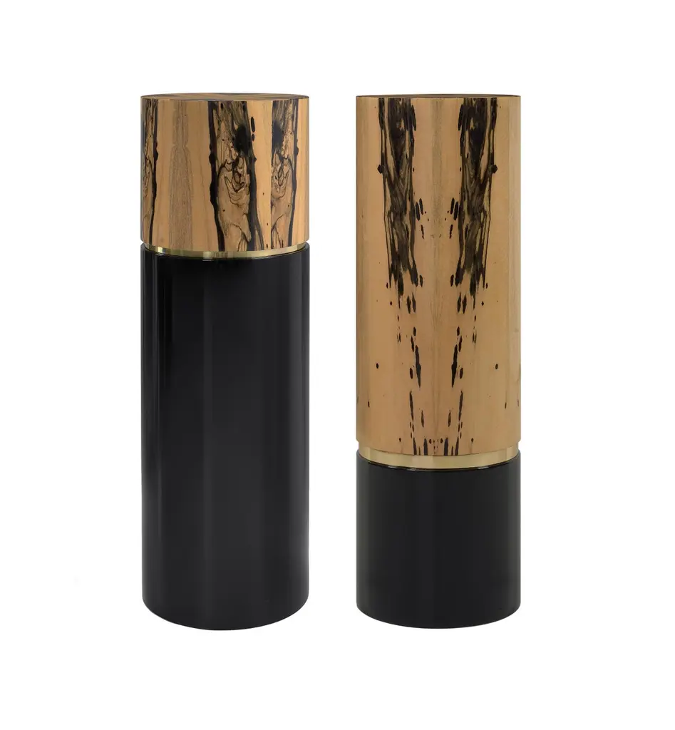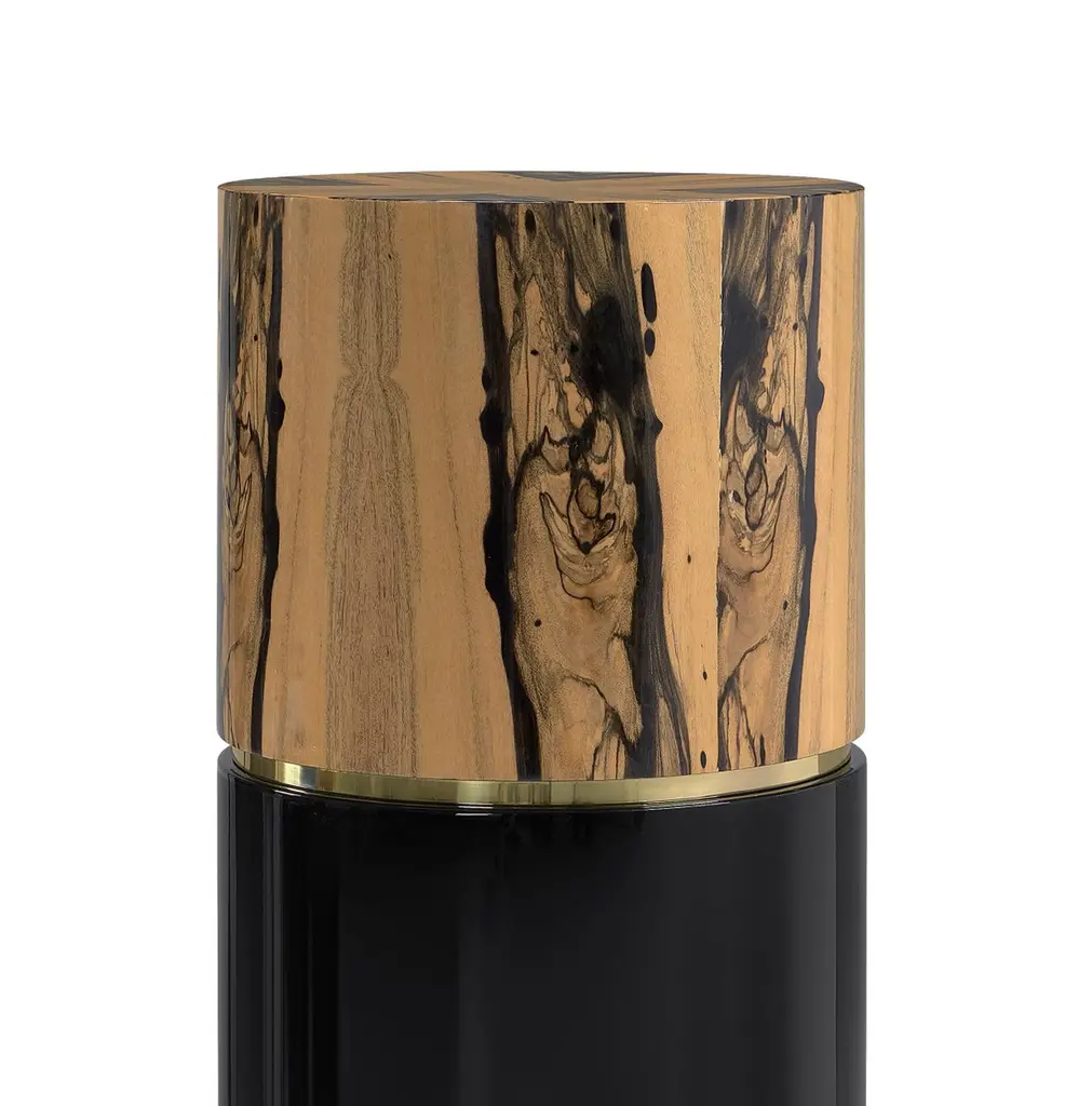 Royal Ebony Pedestal by Memoir EssenceDimensions: D 35 x W 35 x H 110 cm.Materials: Polished brass, lacquer and Royal ebony.Also available in brushed brass. Please contact us.An exquisite combination of royal ebony veneer and black lacquered wood, finished in high gloss varnish. It presents a brass detailed center to split this ma- terial combination, giving and elegant result to this versatile piece to place in any division of you projects.Memoir Essence Interiors has been writing its memoirs day by day, inspired in every detail lived through a feminine world, this world brings the most delicate imaginary. Jewelry, fashion, architecture, music, art and materials are Memoir’s inspirations to materialize a collection of design pieces of furniture, upholstery, lighting and accessories.The use of noble materials like marble, brass, veneers, gold and silver leaf, Swarovski crystals as other decorative and fine materials, combined with handwork techniques as casted brass, hand-whickered fabric ribbons, gold leaf appliance, marble cutted and puzzled pieces, provide the needed essence to tell memoirs through the designed pieces and the interiors they fulfill.This collection mostly handmade and focused on details and material nobility is made in Portugal, bringing handwork techniques that are part of Portuguese history, applied in a current and differentiated way, delivering timeless pieces to your special projects. Acquire Memoir is the opportunity to travel through the feminine essence over design and experience a unique “memoir” of timelessness and exclusivity.Writing is first chapter in 2016, after a journey of inspirational research, forecasting and design, Memoir made its first appearance at Maison et Objet, Paris.Since then Memoir is “writing” memories adding new materials, designs, techniques and appearances around the world, as in Paris, London or UAE.Memoir will continue this journey, always motivated by the inspiration possibilities in the many delicate details found in feminine world.Tell your memoires with this collection and be a memorialist yourself…