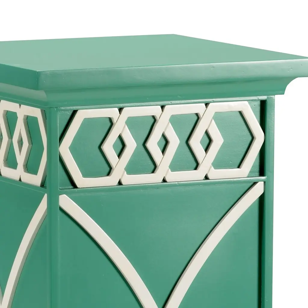 A stunning pedestal featuring an interlocking honeycomb pattern and feminine lines. Available in a variety of colors. Designed by Shayla Copas.