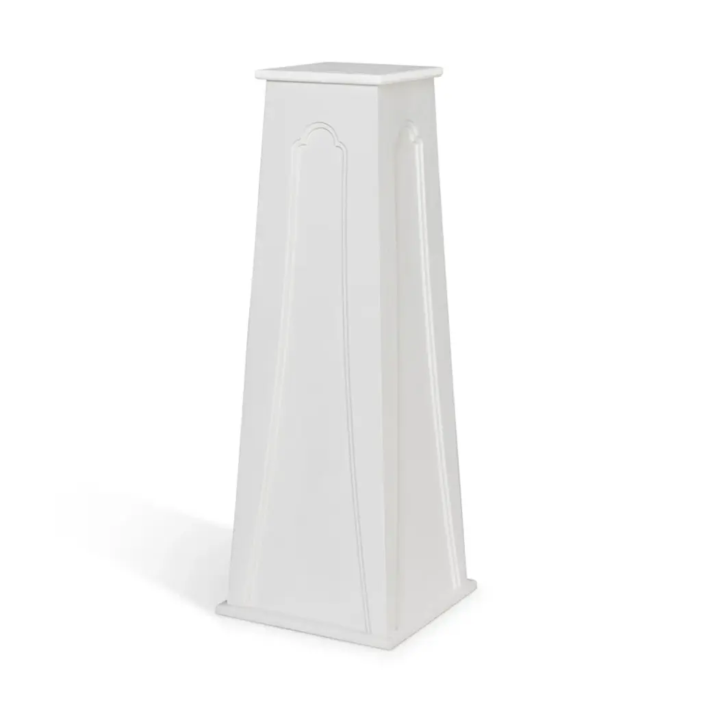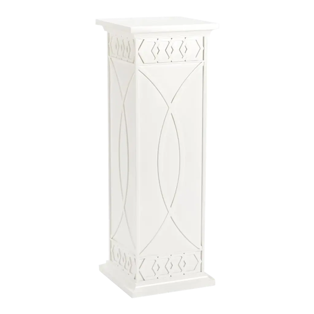 A stunning pedestal featuring an interlocking honeycomb pattern and feminine lines. Available in a variety of colors. Designed by Shayla Copas.