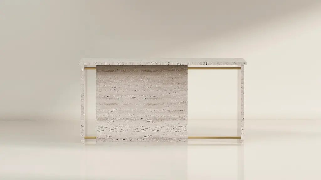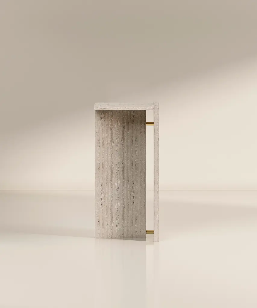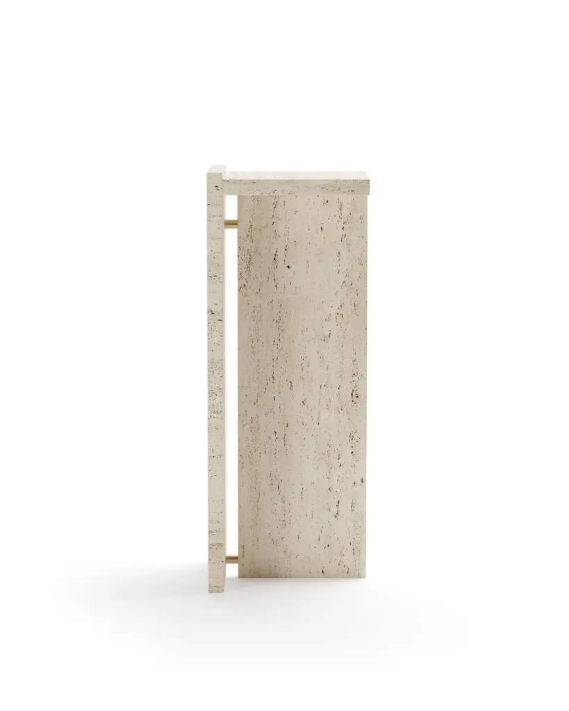 Simple, geometric planes combine in unexpected ways to create sculptural, yet functional forms. The TRNK Collection expands into new forms and materialities with the addition of the Segment Table Series. “The process for designing the Segment Series was reductive. I asked, how can we simplify these forms to make a dense material like solid stone feel a bit lighter? That's how the small gaps between adjoining slabs, which now define the collection, came about. I also considered how light interacts with the product, allowing the occasional ray to peer through the slivers of negative space." - Tariq Dixon, Designer For bringing this collection to life, we turned to Portugal - a country with a centuries-old history of stone artisanship. Each table is made-to-order using thick, solid slabs of raw travertine or honed stone and marble combined with metal rods for material contrast and unyielding structural support. (Please note, raw travertine has open pores, giving it an organic, textural surface.) Made from the finest quality materials and construction, the Segment Tables will gracefully age as timeless heirlooms.