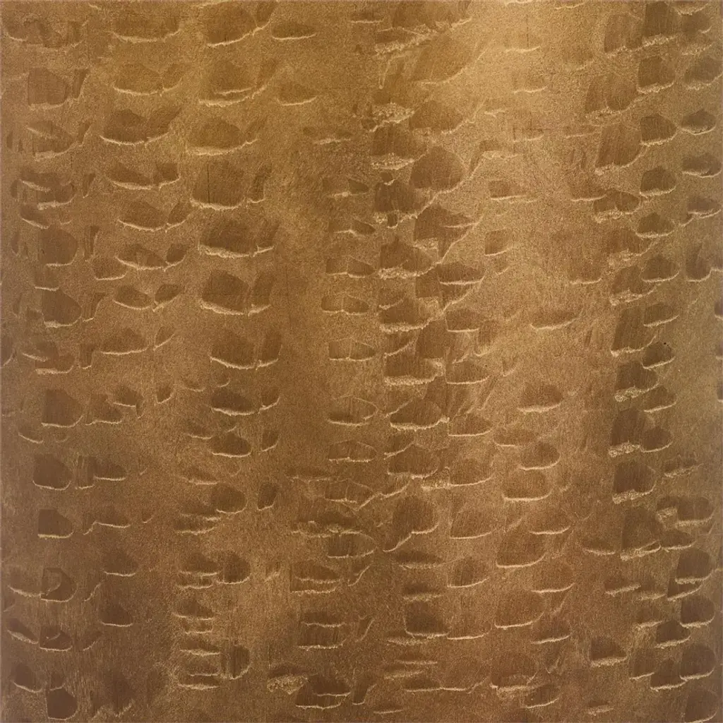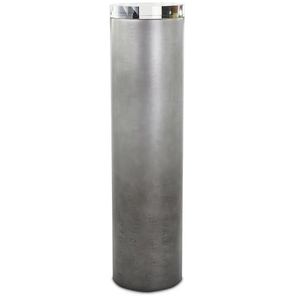 The Serpent Pedestal is a sleek, contemporary piece that depicts naturally occurring patterns in stylish tones. This cylindrical pedestal features an Ombre Gold Snake finish, displaying a beautiful snakeskin motif. A surface of clear crystal rests at the top, complementing the elegant gold tones.