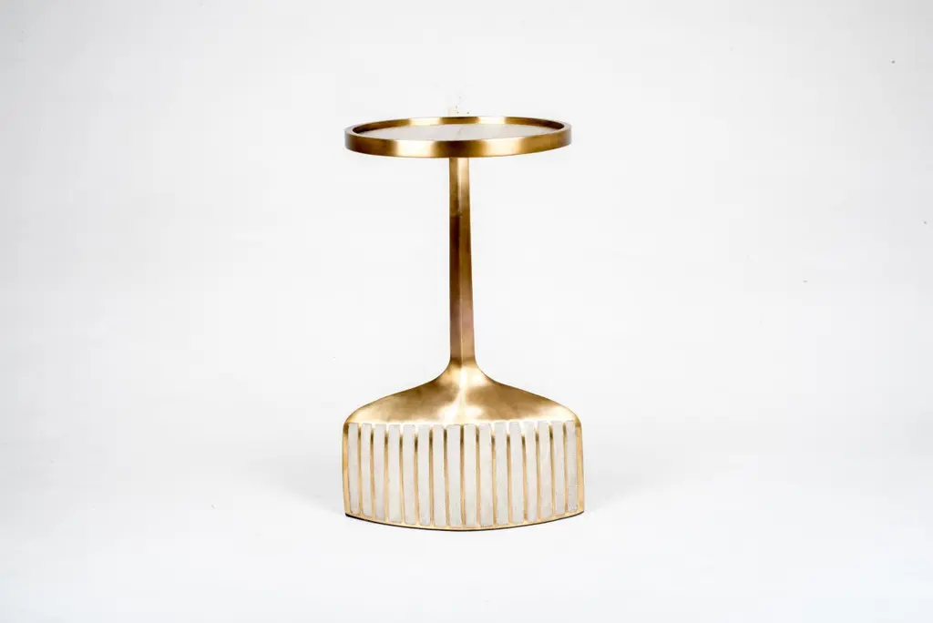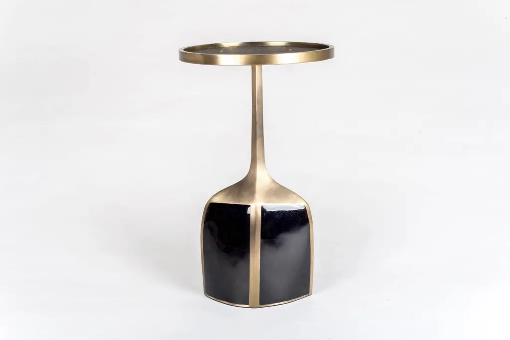 The Paris based label has distinguished themselves since their launch, with their iconic use of shagreen mixed with brass and other exotic materials. All furniture is handcrafted by skilled artisans, ultimately making each piece unique, designed in Paris and produced in the Philippines.The pedestal side table in small and large are the perfect nesting accent pieces due to their sleek and light aesthetic. The large size is inlaid on the top surface with coal black shagreen, the bottom part a mixture of blue pen shell and bronze patina brass. The small size is inlaid on the top surface with Lemurian and the bottom part a mixture of coal black shagreen and bronze patina brass. The option to purchase the tables as individuals is available upon request. Available in other finishes, see images at end of slide. Custom color/sizing available on request.The dimensions of this set are:L- 35 x 35 x 60 cm / 13.75 x 13.75 x 23.5''S- 35.5 x 30.5 x 55 cm / 14 x 12 x 21.5''All R&Y Augousti pieces are handmade by artisans, ultimately making each piece unique. Custom color or sizing available on request. Wipe clean with soft dry cloth.Acclaimed design duo Ria & Yiouri Augousti have established themselves since the 1990s as pioneers of modern-vintage style through their luxurious Art Deco inspired collections.The Paris based label has distinguished themselves since their launch, with their iconic use of shagreen mixed with brass and other exotic materials. All furniture is handcrafted by skilled artisans, ultimately making each piece unique. All shagreen-covered items should be kept out of direct sunlight, color variants may occur on the stingray and other exotic finishes, but this showcases the Parisian label's commitment to creating authentic luxurious products using natural components. For all pieces inlaid with stone and semi-precious stones, due to the natural quality of the material color tonality and pattern placement may differ slightly per piece.