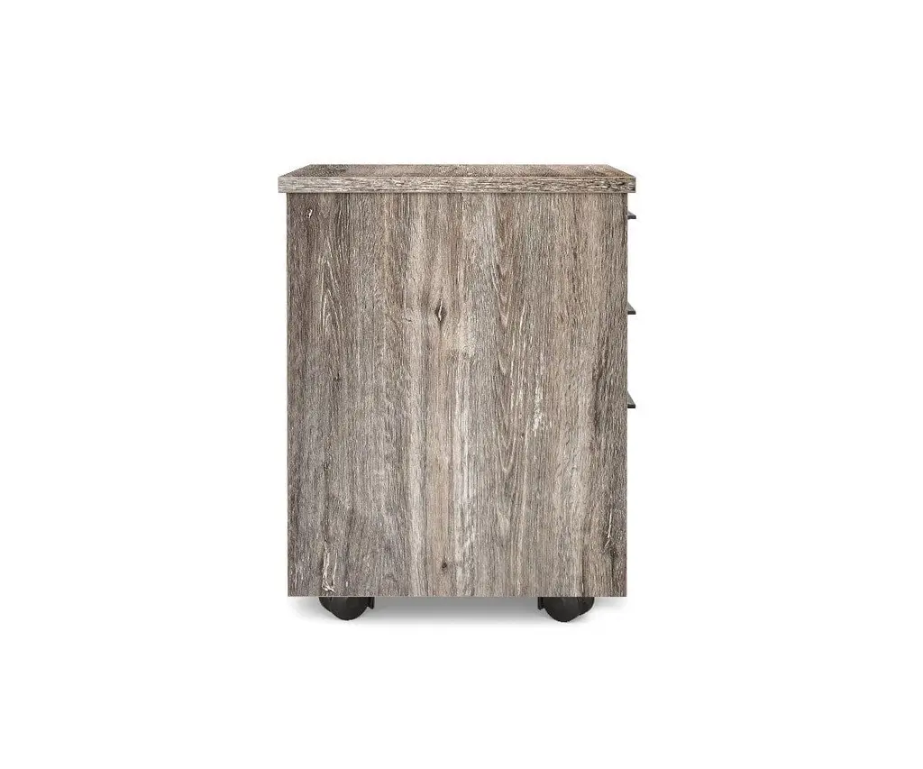Streamline your at-home or office organization with the contemporary Slater Mobile File Pedestal, complete with three lockable drawers for added security. Featuring contrasting light-and-dark wood tones and finished with a matte, textured wood grain melamine veneer, the entire Slater Collection will fit into nearly any aesthetic for seamless styling at an exceptional value. The natural feel of this piece is anchored by organic features such as knots, highlighted wood grain, natural splits in the wood and color variations.