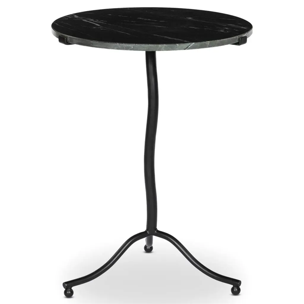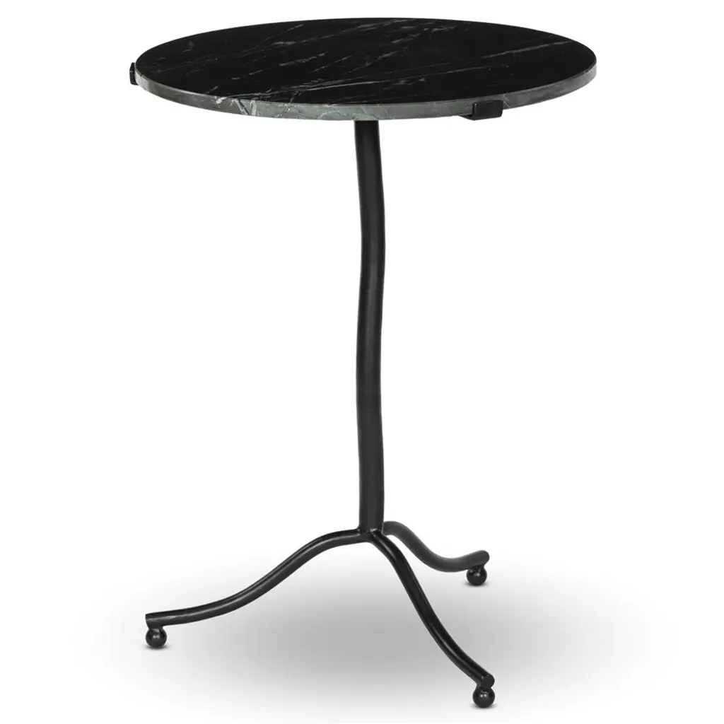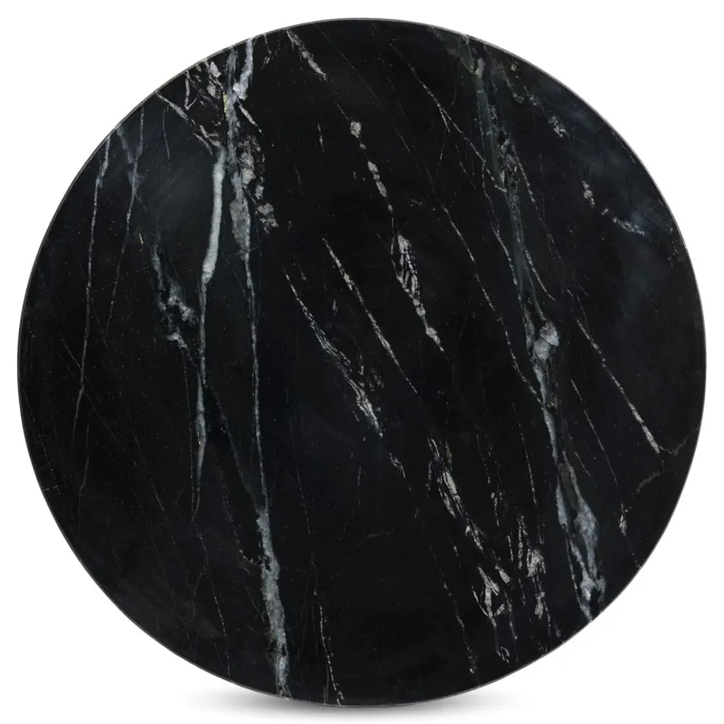Soleil Updated Traditional Black Marble Iron Round Pedestal End Table