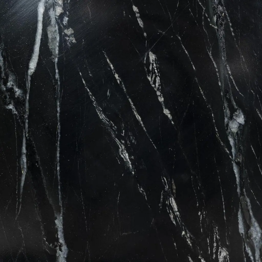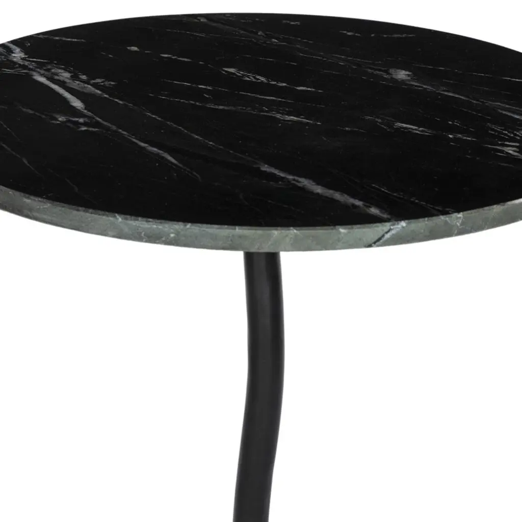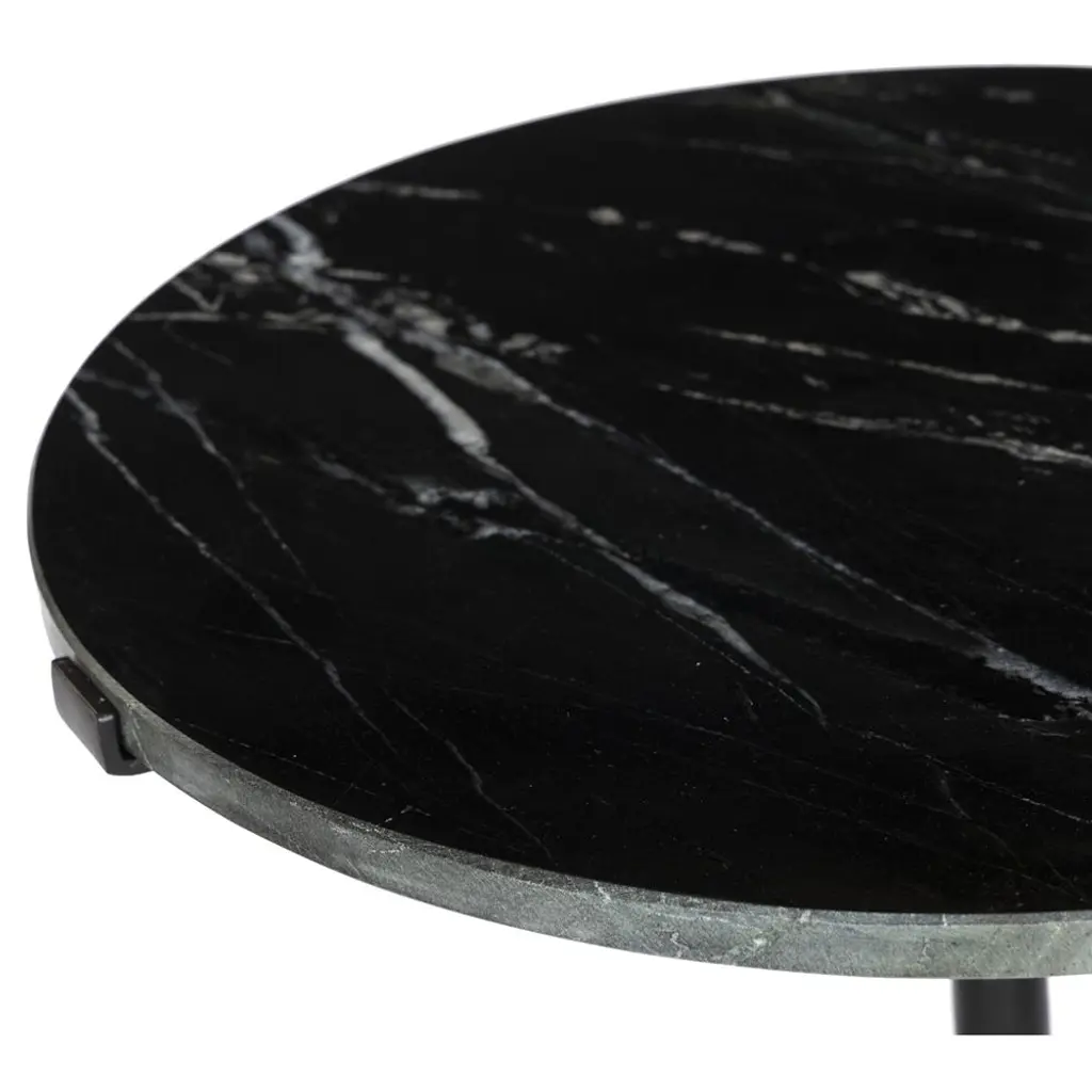 Soleil Updated Traditional Black Marble Iron Round Pedestal End Table