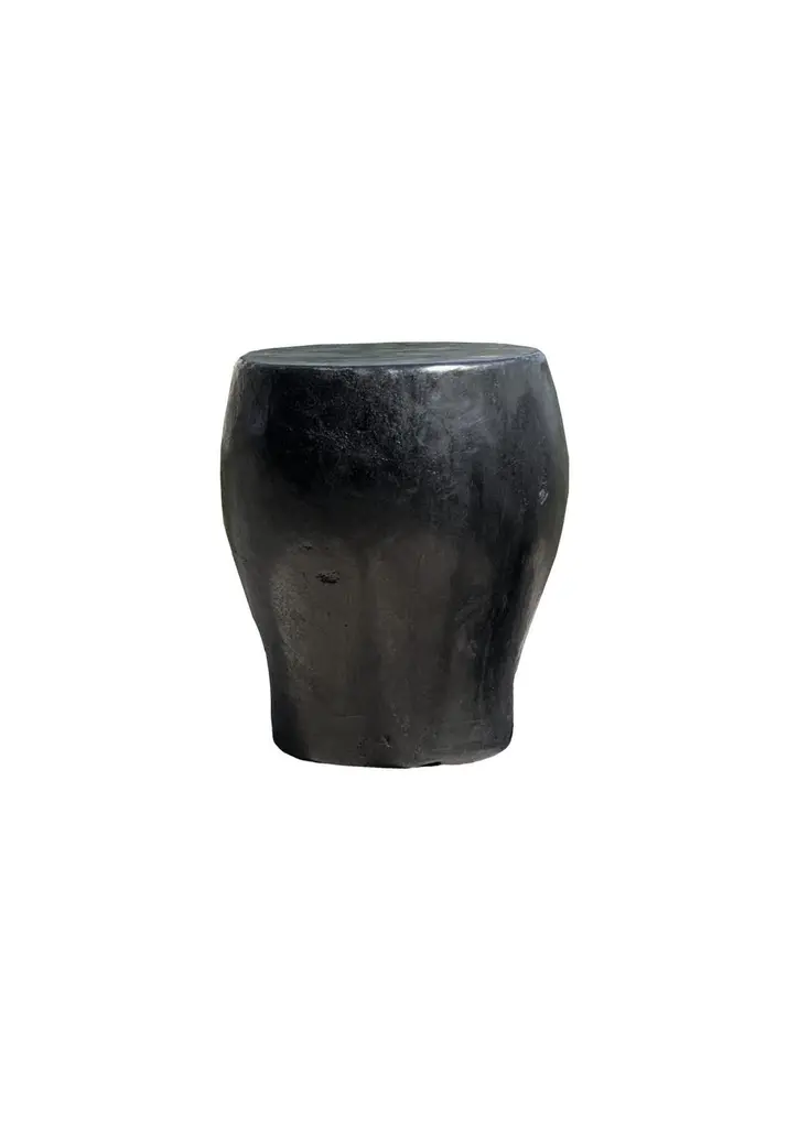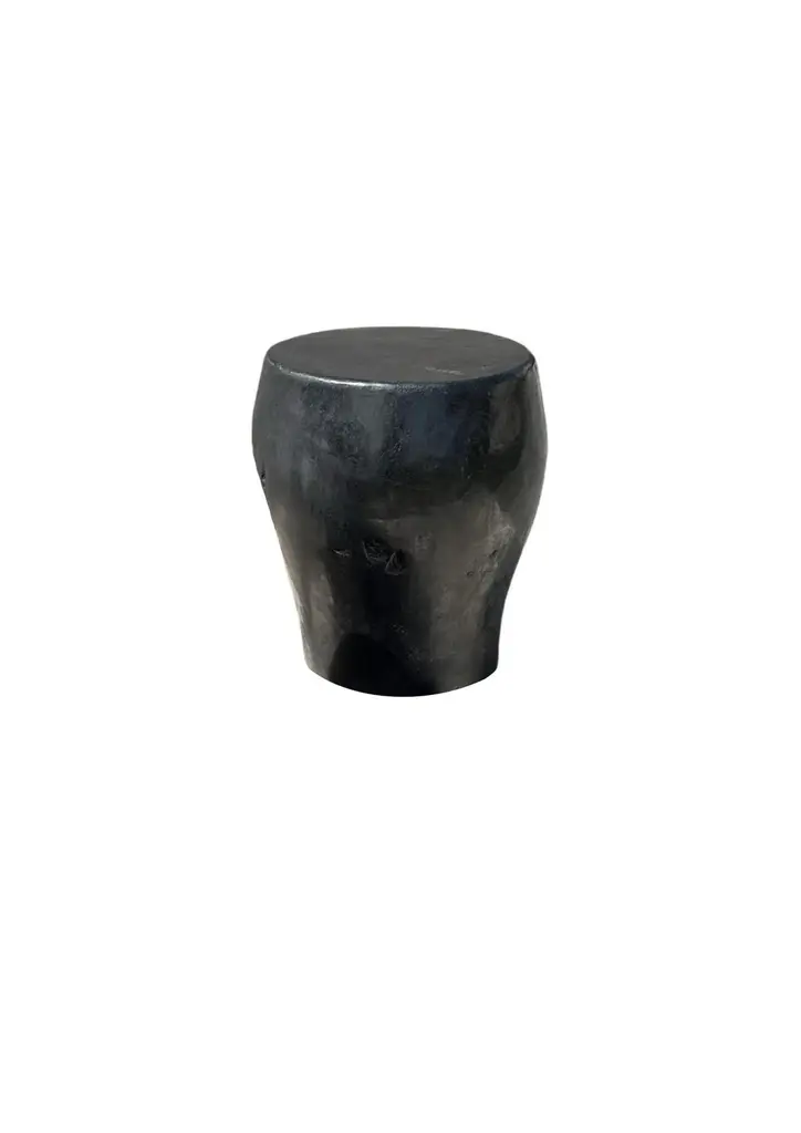 A incredibly heavy and solid rounded stone block. This lovely sculptural object was crafted from a solid stone slab. A raw and organic object with beautiful textures. Sourced from a river bed in East Java, it was carefully shaped and polished into its current form. Its narrow & round shape make it perfect to be used as a side table or even a pedestal.