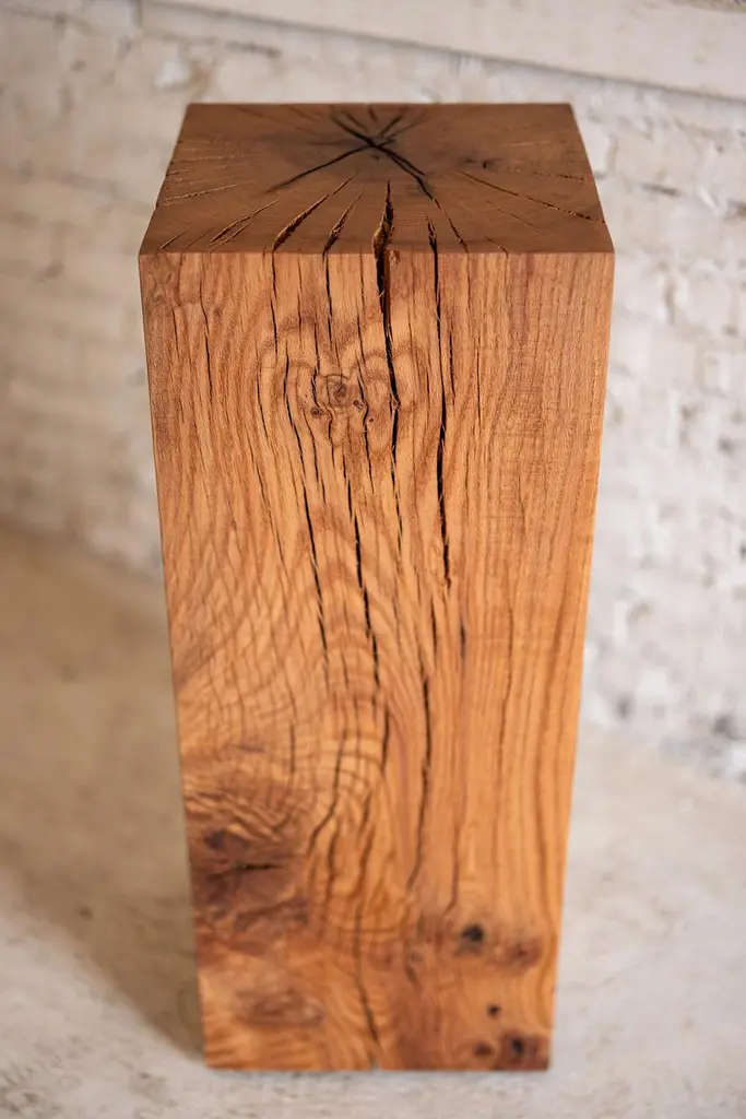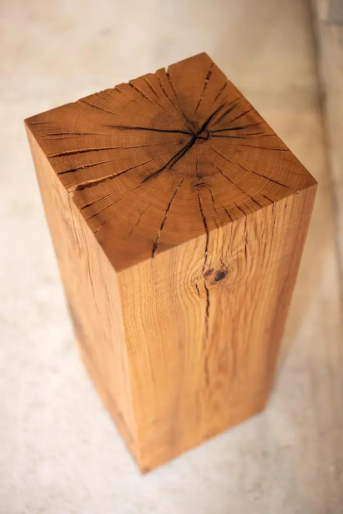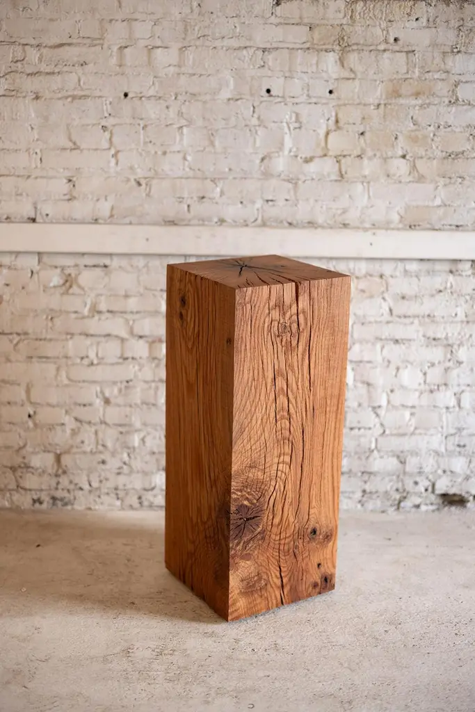 Solidly built using urban wood, the Le Boit Collection combines rustic appeal with a clean, contemporary design. The unique beauty of urban wood as a solid volume makes a statement as a display for your art piece or personal treasure, offering unique grain as a platform. Pads or glides under legs help protect your floors. Display your very own Le Boit in the entry way of your house, in your reading nook next to a chair, or light a candle next to your tub to relax in your bathroom.Message us for LTL shipping.A field-to-studio company, Alabama Sawyer repurposes the finest wood species, reclaimed from our local urban forests, to create one of a kind furniture pieces and accessories for the home or business. No stain is used, so color and grain will vary. The reclaimed wood features variations inherent to salvaged materials such as a rustic distressed finish, visible knots, hairline cracks and natural stains, which may result in hue variations, rubbed edges, or other antique-like characteristics, that are part of the rustic beauty of these side tables. If the finish cracks or chips, you may see unfinished pine underneath. This is the nature of natural materials and what our customers tell us they love about having urban wood in their home. This is a living finish. Natural materials and will age over time and with exposure to the elements—the more exposure, the quicker they will age. As with all wood, but especially a large solid volume, expansion and contraction due to temperature variability may occur.