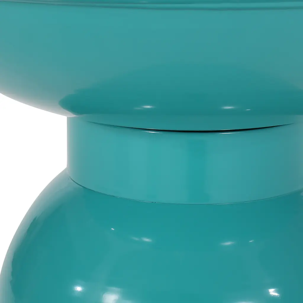 Inspire your outdoor lounge area with this stylish and sophisticated end table, perfect for adding a touch of modern elegance. Featuring a sleek pedestal structure with a flared design, it provides the ideal spot for holding snacks or drinks. The circular design and smooth finish add a chic, minimalistic look that complements any space. Built with a durable powder-coated iron frame, this table ensures lasting stability and functionality for outdoor use.