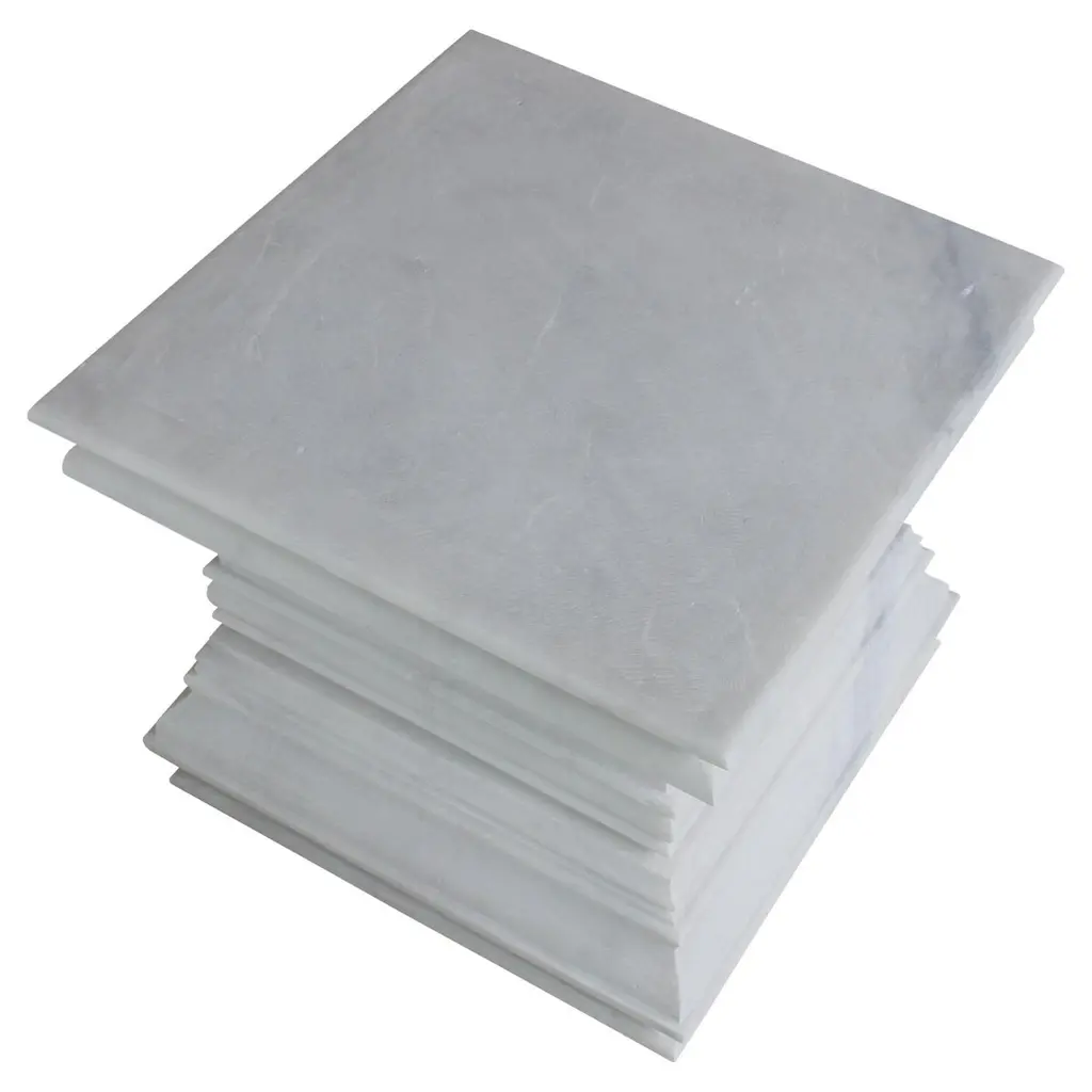 Square Architectural Pedestal Side Table In White Marble By Stephanie Odegard
