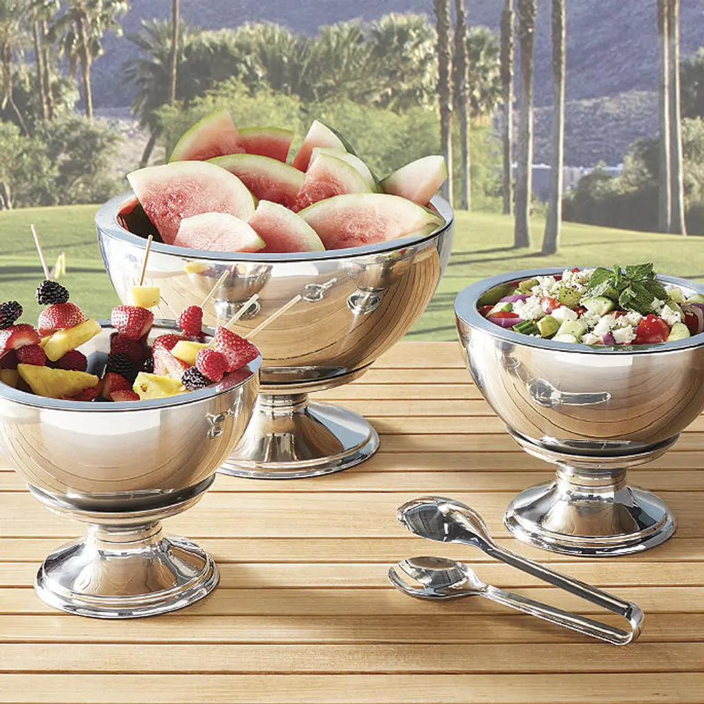 Each classically shaped pedestal is made of double-walled stainless steel and supports our insulated bowls. Double-walled stainless steel construction Supports our Super Chill Insulated Bowls: Medium supports the 1-quart Super Chill Insulated Bowl and the 2-quart Super Chill Insulated Bowl Large supports the 4-quart Super Chill Insulated Bowl Hand wash only A Frontgate exclusive. At Frontgate, our primary focus is quality. We guarantee that every product we sell will stand up to the supreme test – our customers' satisfaction. To learn more about our policies, visit our Shipping & Processing, Returns & Exchanges and Warranty & Price Guarantee pages.