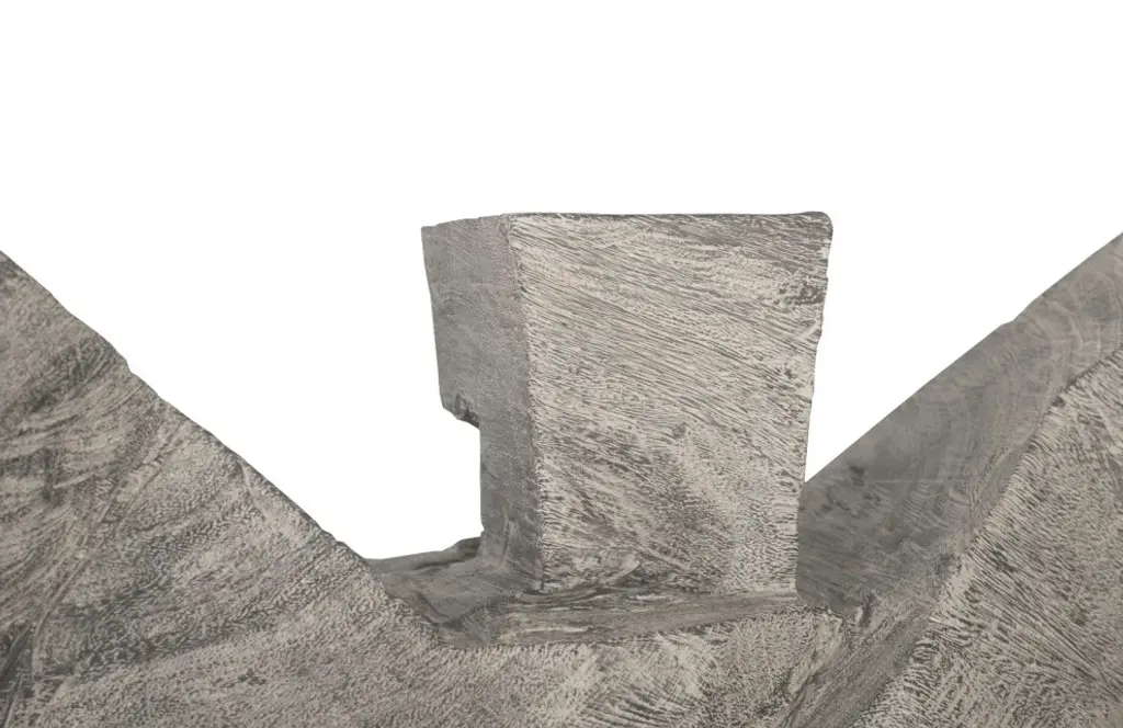 Weather worn woods left out in the sun and rain for months at a time take on a wonderfully aged patina. By cerusing the wood and applying a multi-step finish, we achieve a stone-like effect which preserves the rough texture and rich color of the wood.