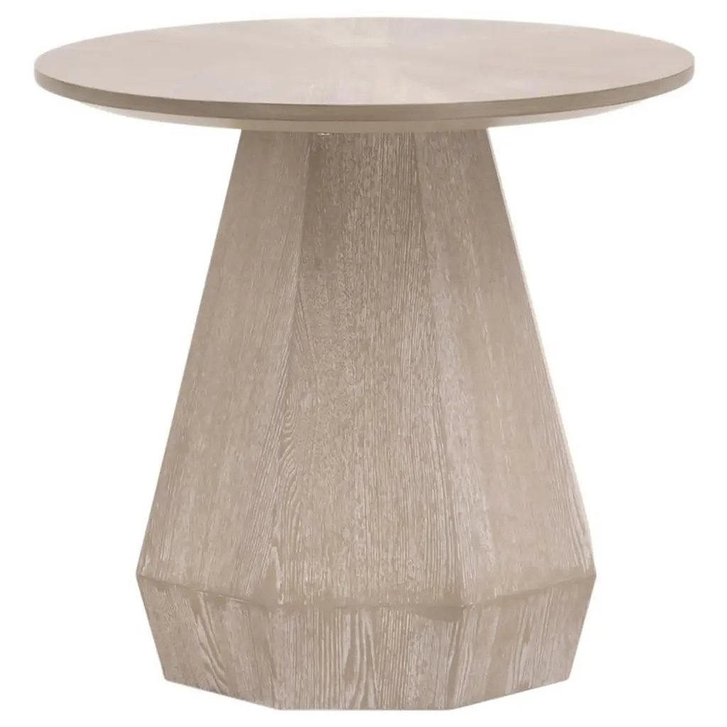 Unique Cone Base Pedestal Round End Table Contemporary Style Rubberwood Structure Oak Finish