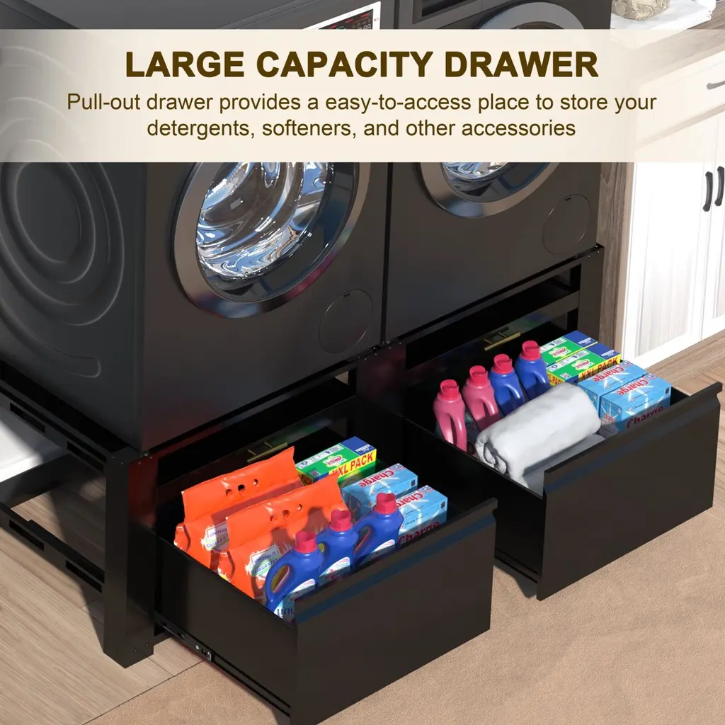 Veikous Laundry Pedestal For Washer And Dryer With Large Capacity Drawer - Black