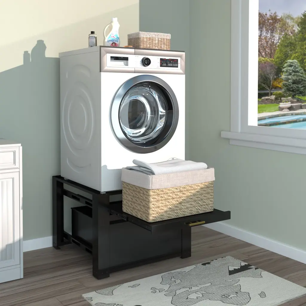 Sturdy and Durable Noise Reduction: Made from SPCC cold-rolled steel plate, the pedestal is extremely robust and can accommodate washing machines weighing up to 660 pounds (299.4 kg). Quick and Easy Assembly: The standard version is easy to install and comes with assembly instructions. You can easily assemble it on your own with just a screwdriver. Universally Compatible with Various Models: The intuitive design is suitable for all standard machines, including Samsung, LG, Whirlpool, General Electric, Miele, Electrolux, Bosch, and more. So you can confidently elevate your washing machine and dryer. Easier Laundry Days: The washing machine pedestal can lift your washer 16 inches (406.4 mm) off the damp floor, bringing it to a more ergonomic working height. This reduces the strain on your back and knees, allowing you to load clothes without excessive bending and maintaining the correct posture while doing laundry. Additional Storage Space (Drawer Version): The drawer model features a 20.5x16-inch (520x405mm) drawer, perfect for storing moisture-sensitive items while also acting as a dust shield, making your space appear neater. Built-in Spirit Level for Balance: Prevent appliances from tipping over with the included 8-level bubble level, ensuring that uneven floors do not cause balancing issues or potential damage to the appliance or pose a risk to children. Package Content Laundry Pedestal x 1 Instruction Manual x 1 Hex Wrench (Allen Key) x 1 Socket Wrench x 1 EVA Shock Absorption Pads x 4 Drawer Handle x 1 M6*12 Screws x 28 M10 Nuts x 28 M4*7 Screws x 2