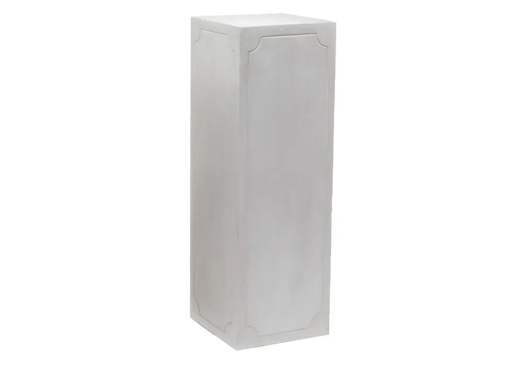 Crafted entirely from concrete, this statement piece features a blend of organic and carved textures. Its straightforward design lends a crisp, clean form, styling well into a variety of spaces. Available in black or ivory, each adds depth and dimension effortlessly elevating artworks and sculptures.
