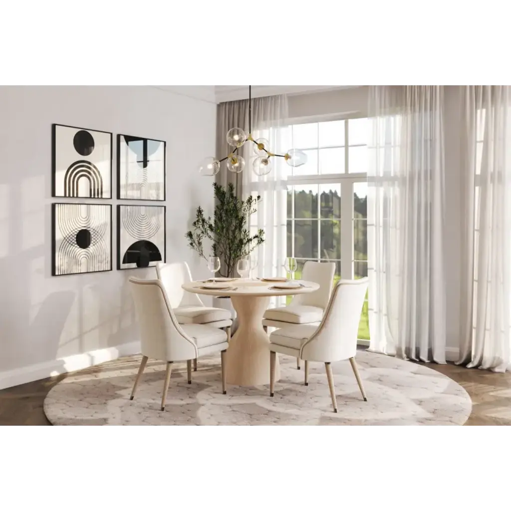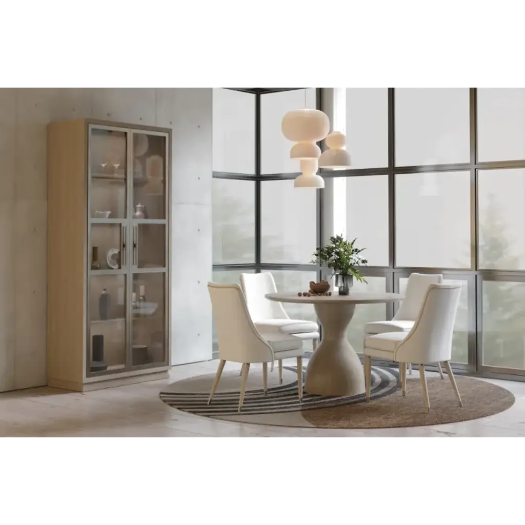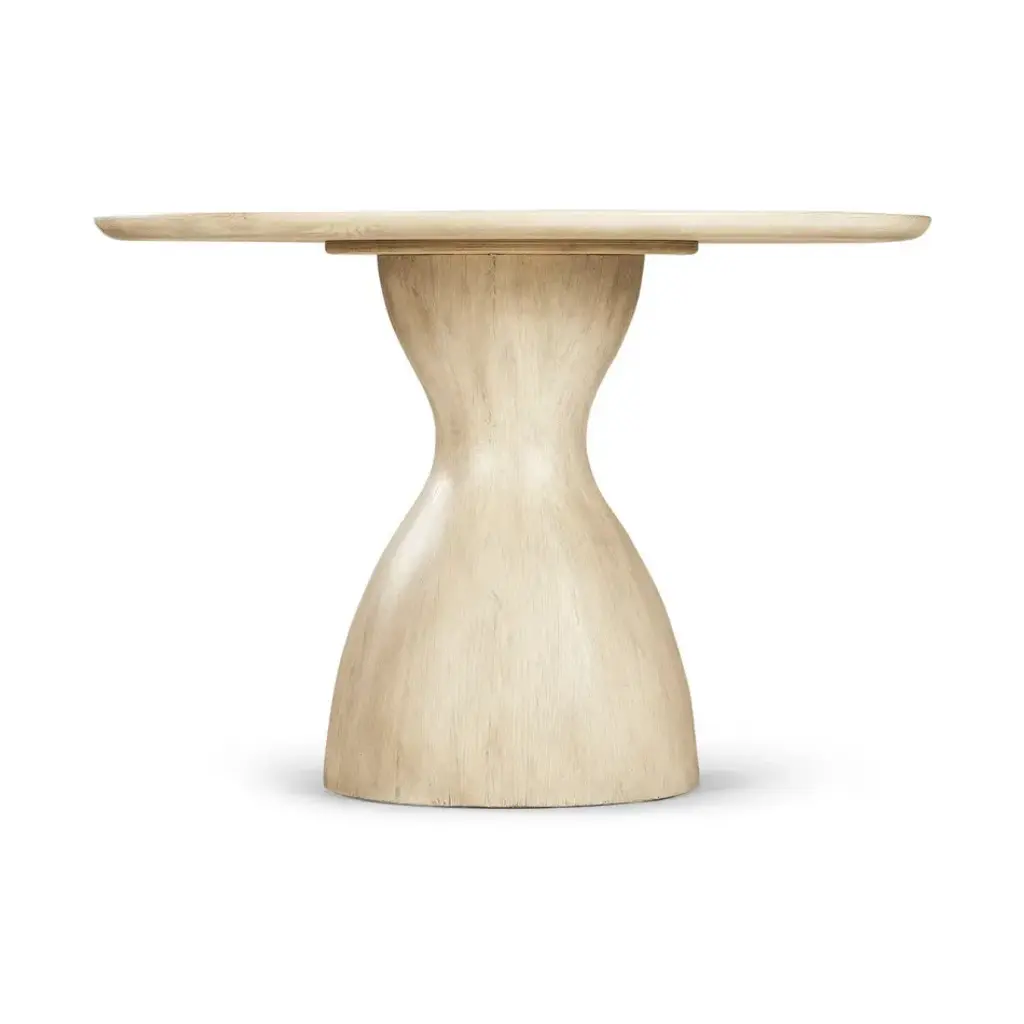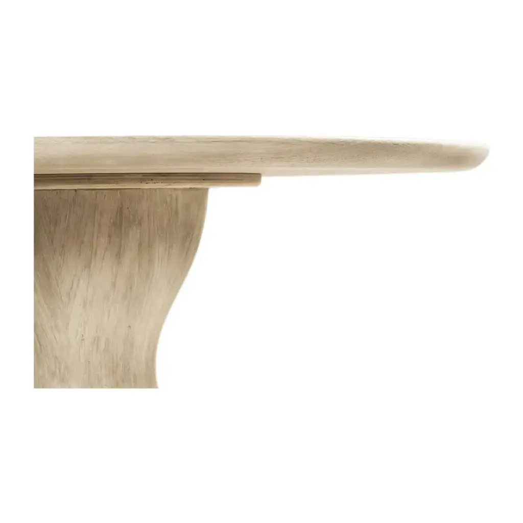 001-2-D00-WWK The Seamount Oak Pedestal Table from Jonathan Charles' bespoke Water portfolio has a visually descriptive elegance all its own. Unending symmetry, remarkable simplicity and true down-to-Earth balance come together in expertly crafted solid hardwoods and veneers finished in Bleached Oak. A wood top features a center cut out revealing the stump end grain for a dynamic focal point. 1 Year Limited