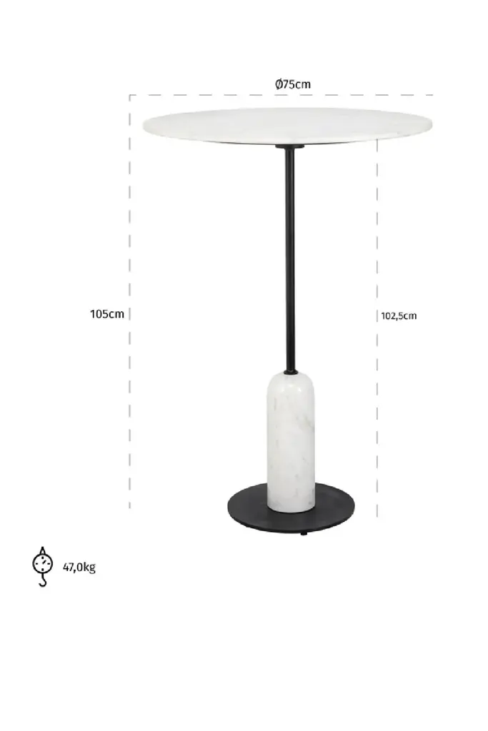 Elevate your space with the White Marble Pedestal Bar Table from Richmond Interiors Jagger. Its sleek marble top pairs seamlessly with a sturdy pedestal base, offering both style and stability. Perfect for intimate gatherings or chic entertaining, this table adds a refined touch to any bar or lounge setting.