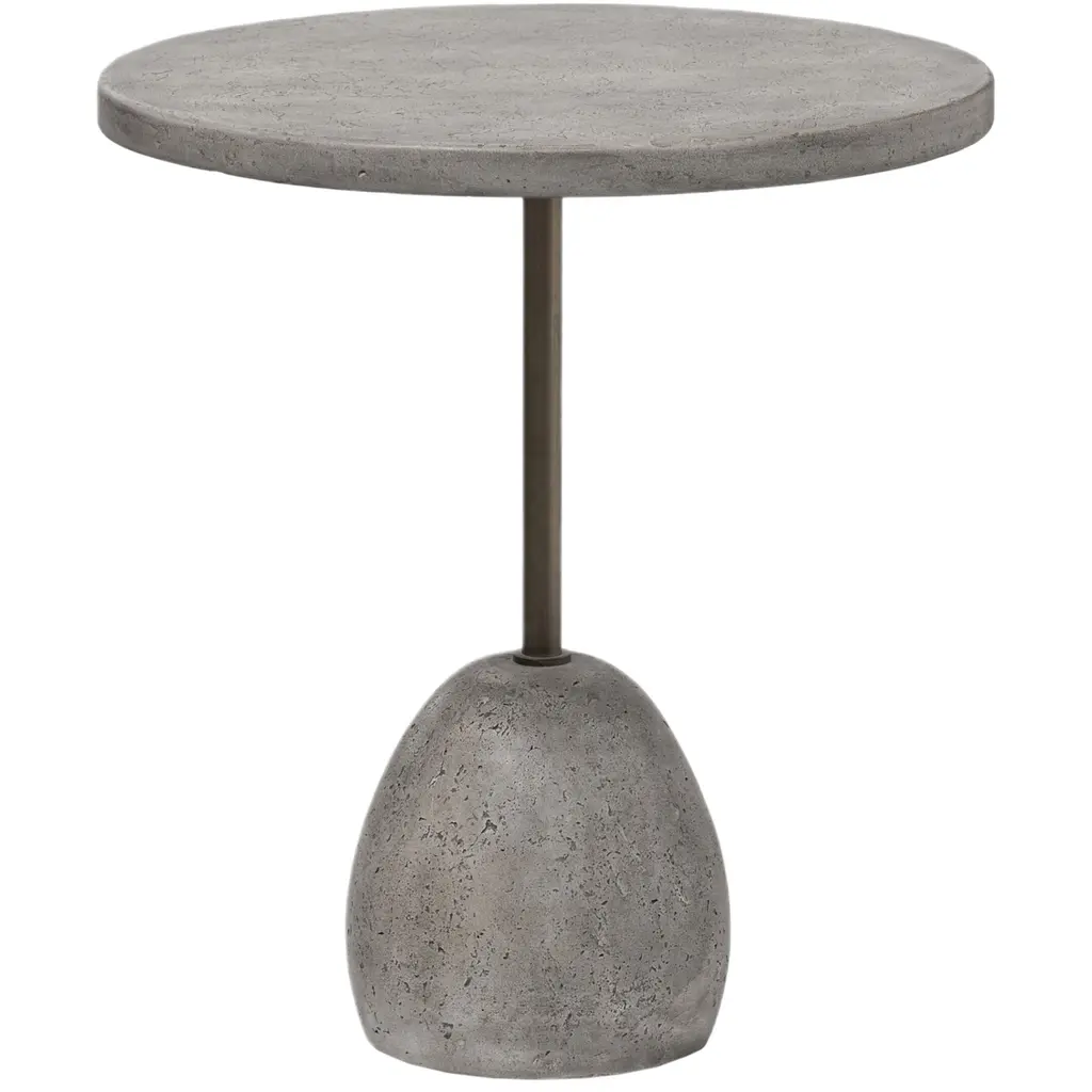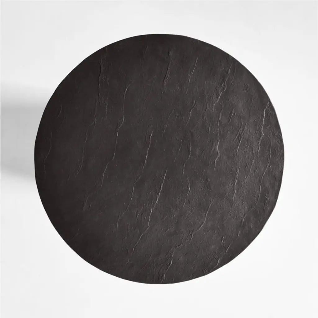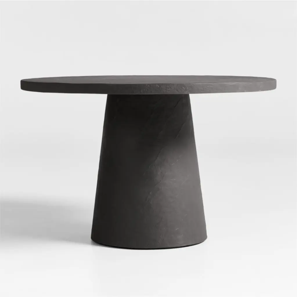 Willy distills the classic pedestal table down to its striking essentials in chic charcoal. The bistro table's bold conical pedestal and simple round top are made from concrete material that creates a plaster-like appearance but is lighter in weight and more easily fabricated into this dramatically simple shape. Bistro-scaled to seat two, the grey table is a Crate & Barrel exclusive.Part of the Leanne Ford furniture collection, exclusive to Crate and Barrel. A rising design star with a motto we can get behind"paint white, wear black"Ford created pieces that capture her cool, artful vibe.