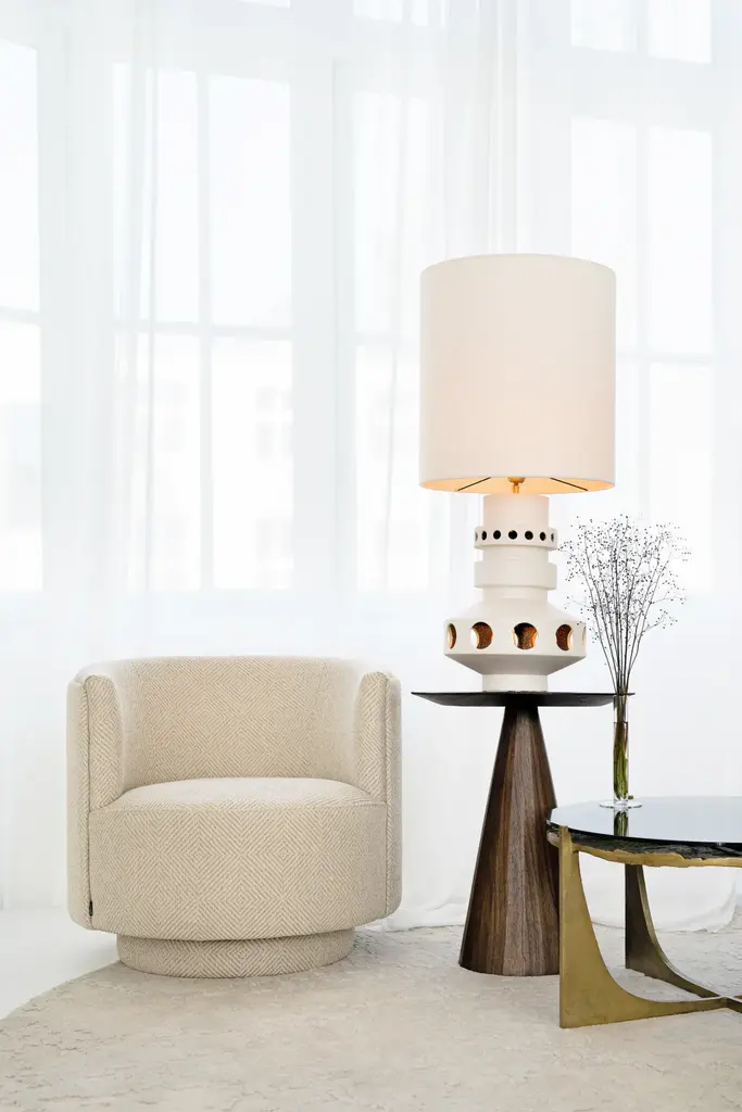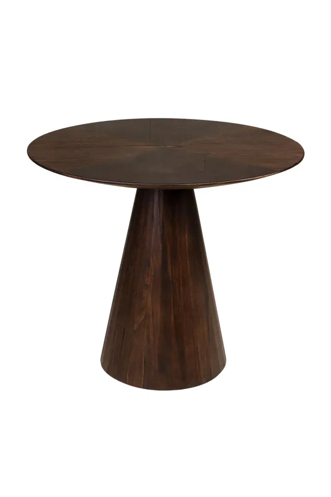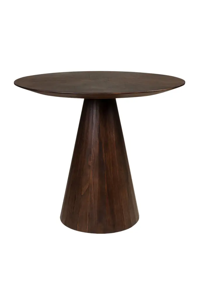 The Congo Occasional Table by Versmissen, crafted from Mindi wood in a rich roasted coffee finish, features a round tabletop and conical pedestal base. Its warm tones and elegant design make it a stylish addition to any interior, enhancing the ambiance with its natural charm and versatility. Whether as a coffee table in the living room or a bedside table in the bedroom elevates the overall aesthetic of the space with its timeless appeal.