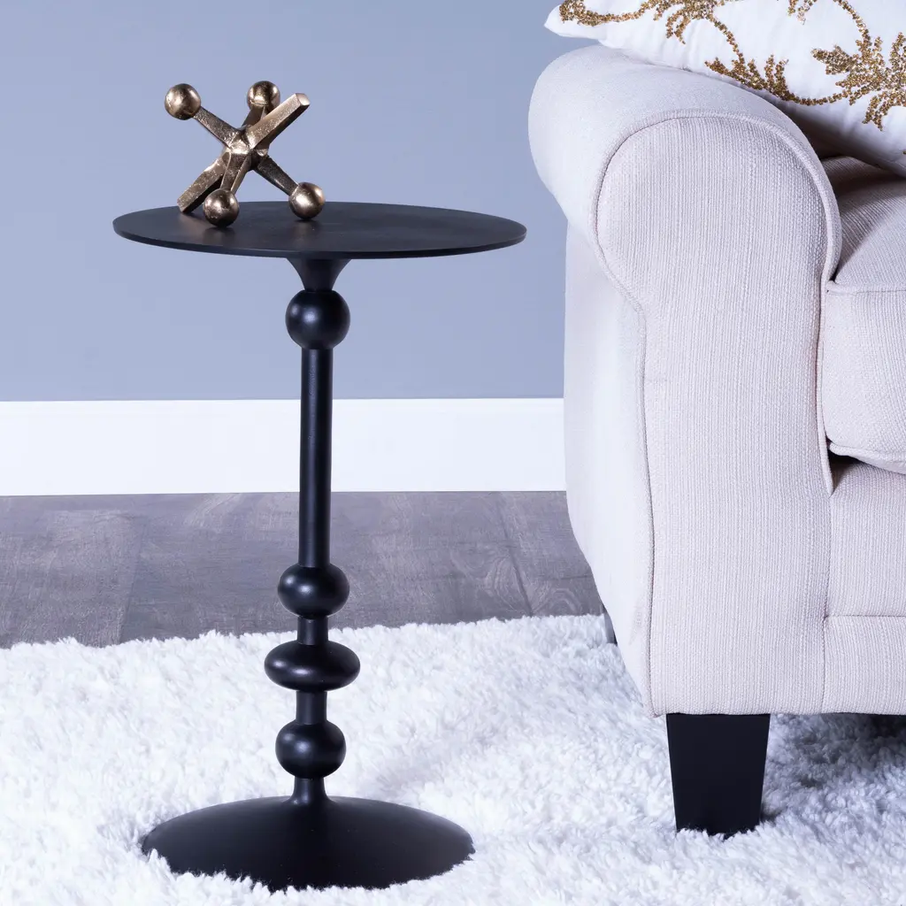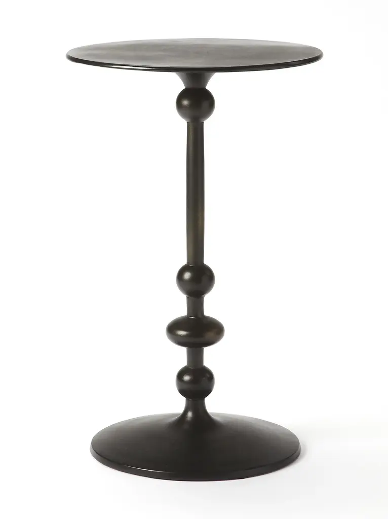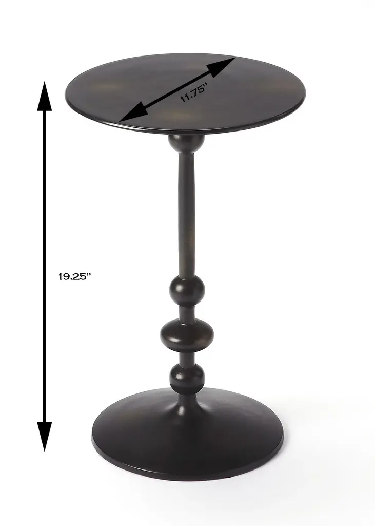 Smooth rounded curves seemingly emanate from the base of this round iron End Table. Coupled with a distressed matte black finish, it is graceful in appearance with a subtle artistic flair. Durably Constructed With: Aluminium Product Construction Features: Finish Distressing Product Assembled Measurement & Weight: 19.25" H x 12.0" W x 12.0" D -- 7.0 lbs. 33 lbs. Suggested weight capacity Item Arrives: Assembled Photo may slightly differ from actual item in terms of color/finish due to the lighting during photo shoot or the monitor's display.