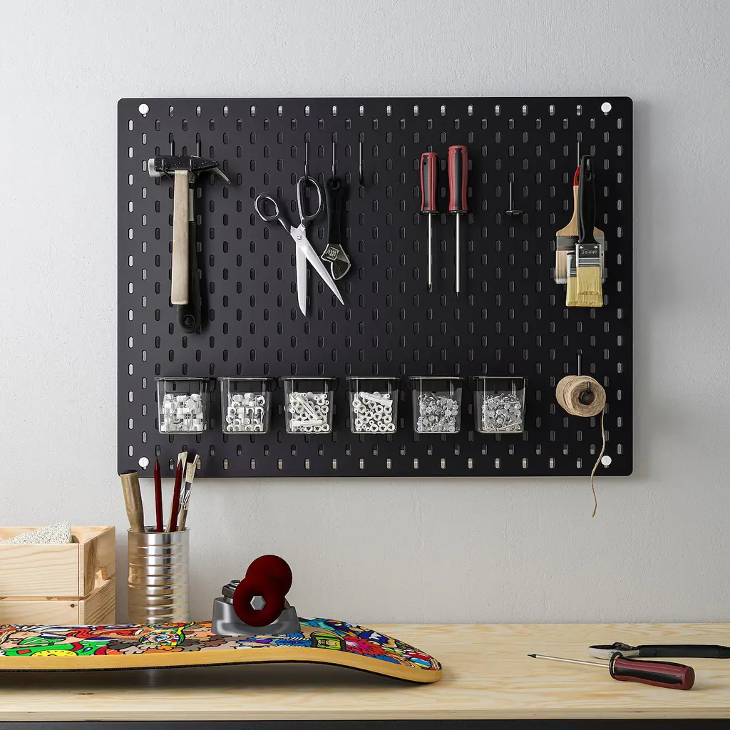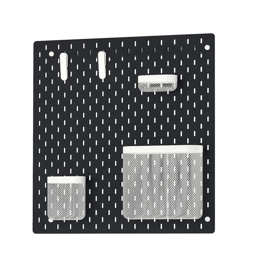 SKÅDIS Pegboard - black 30x22 ". Choose the accessories from the SKÅDIS series that suit your needs and create a personal storage combination. You can place the pegboard on a wall – or fix it to your desk by completing with connectors that are sold separately. Rail for wall mounting included.