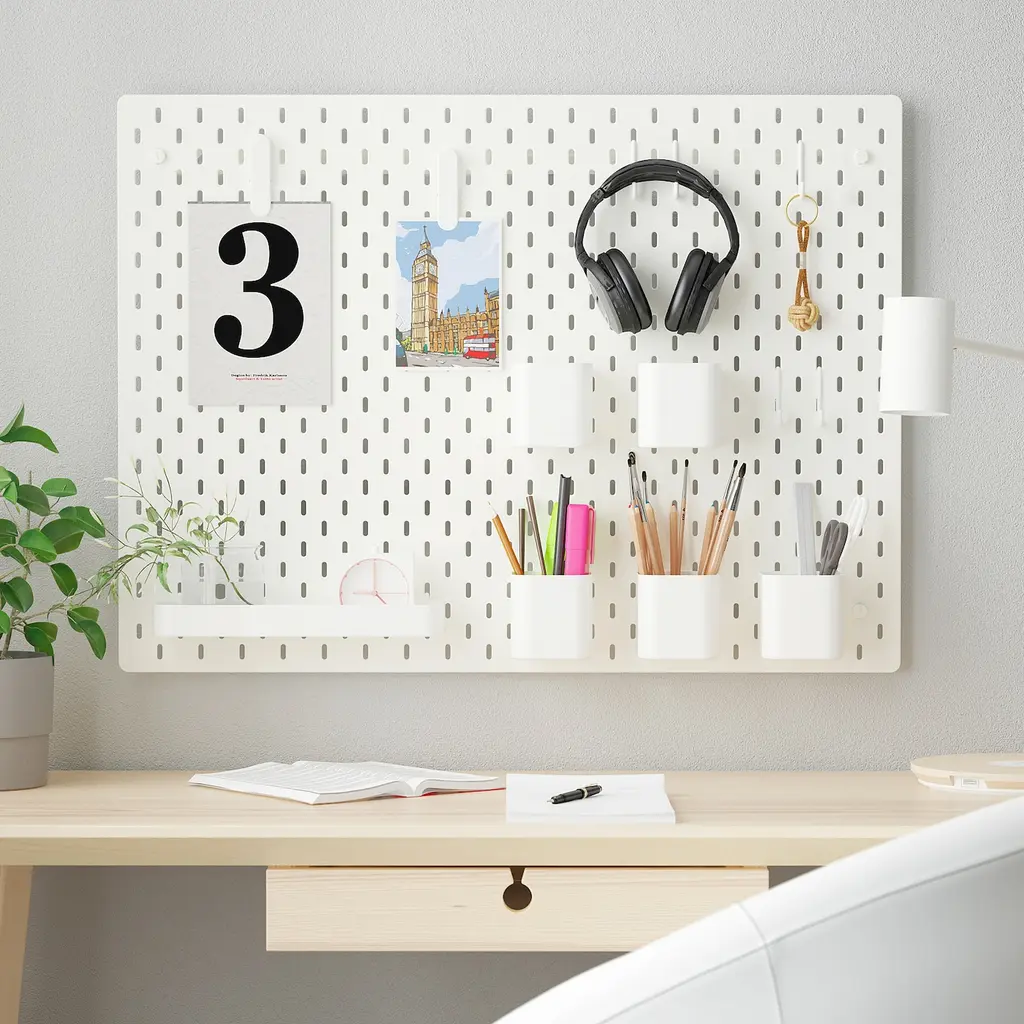 SKÅDIS Pegboard combination. You can use SKÅDIS pegboard and accessories to display your favorite things while keeping your home organized. The accessories are easy to attach anywhere on the board and are easy to move when you like. Can also be used in bathrooms.