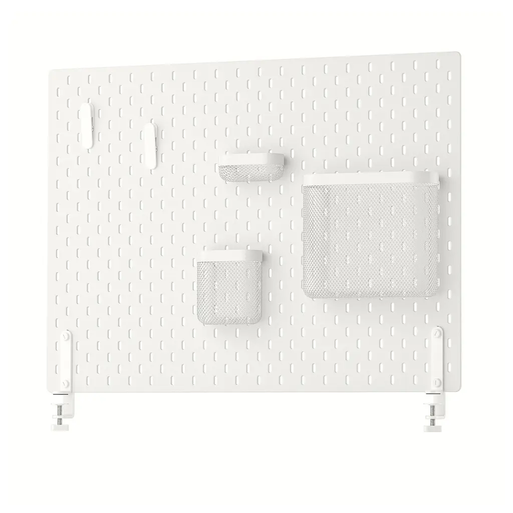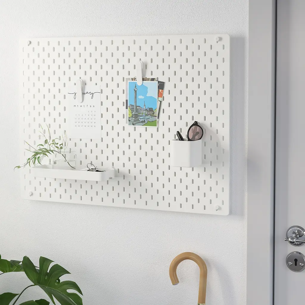 SKÅDIS Pegboard combination - white 30x22 ". With SKÅDIS pegboard and accessories it's easy to organize all the rooms of the home and quickly find what you need. The accessories are easy to attach anywhere on the pegboard and easy to move when you like - no tools needed.