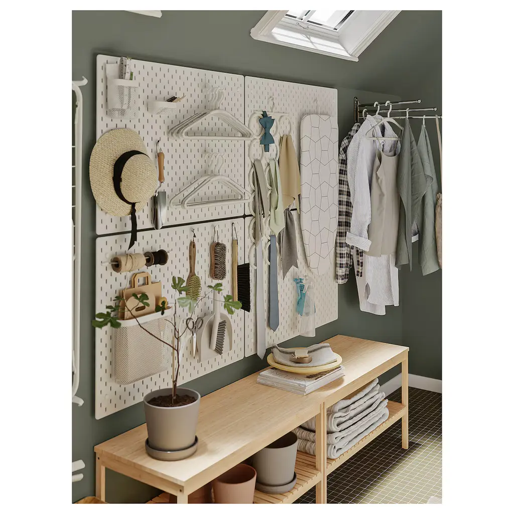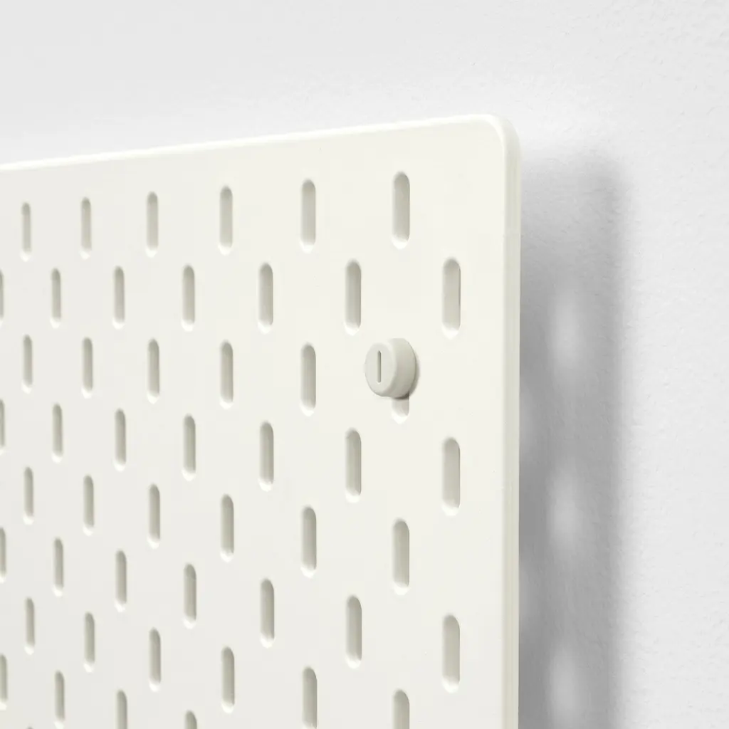 SKÅDIS Pegboard - white 30x22 ". Choose the accessories from the SKÅDIS series that suit your needs and create a personal storage combination. You can place the pegboard on a wall – or fix it to your desk by completing with connectors that are sold separately. Rail for wall mounting included.