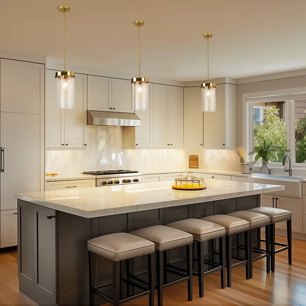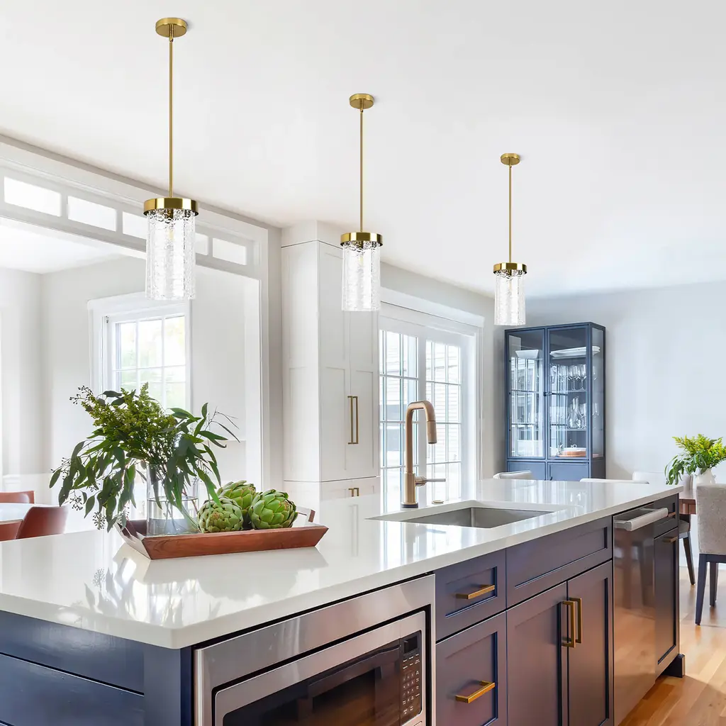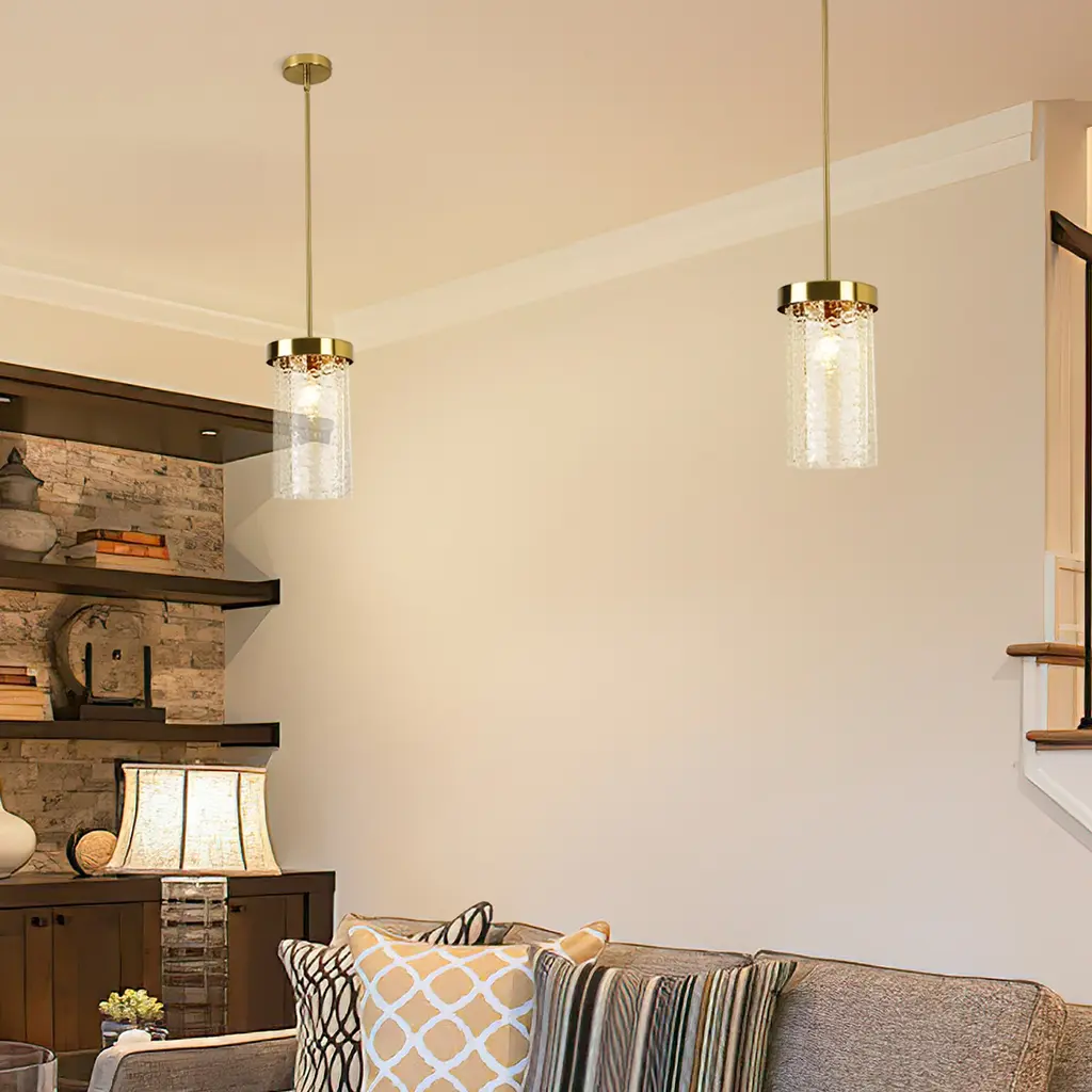 Detail:Illuminate your space with this elegant pendant light, designed to bring contemporary sophistication to kitchens, dining areas, or entryways. Featuring a single E26 bulb socket (bulb not included), it offers focused lighting ideal for both functional and decorative purposes. The textured hammered glass shade creates stunning light patterns while the sleek gold-finished metal frame adds a touch of modern luxury. With an adjustable height and compatibility with flat or sloped ceilings, this pendant light adapts seamlessly to various settings. Pair it with a dimmable bulb and dimmer switch to set the perfect mood in your space.Feature: