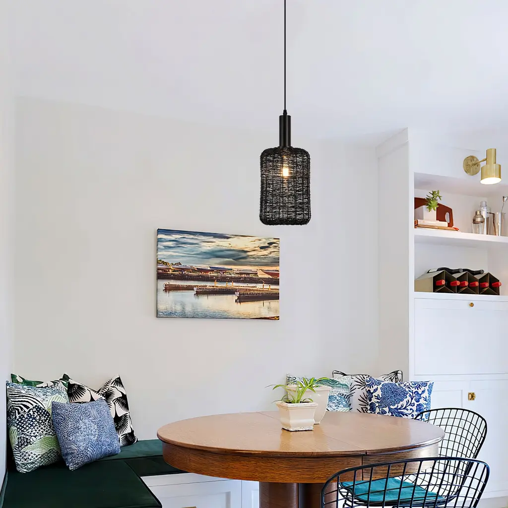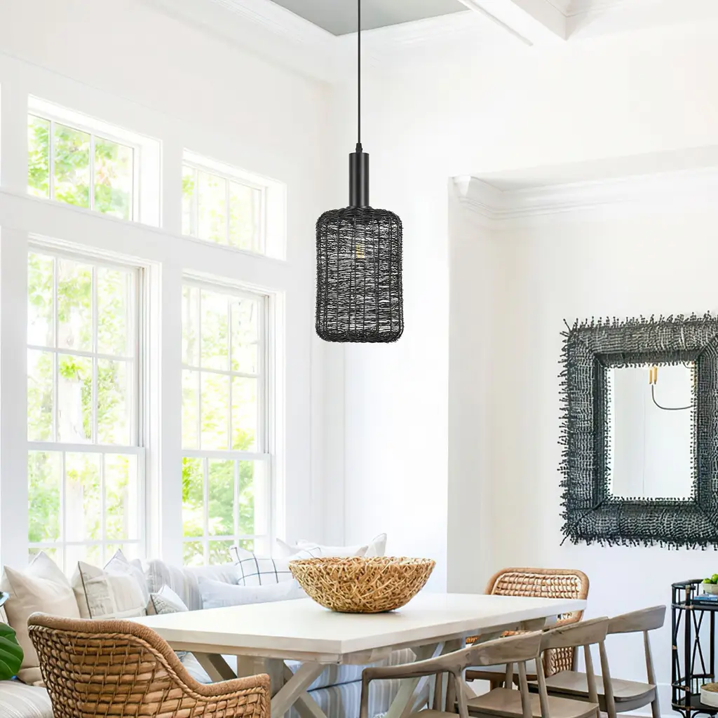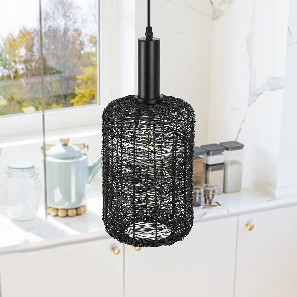 Detail:Add a touch of industrial elegance to your space with this meticulously crafted pendant light. Featuring a unique woven metal cage design, this pendant light casts a warm, inviting glow that enhances any room's ambiance. With its single E26 bulb socket (bulb not included), you have the freedom to select a bulb that best suits your lighting needs and style preferences. Ideal for dining areas, kitchen islands, or entryways, this versatile fixture brings a sleek yet rustic charm to both modern and traditional interiors. Upgrade your decor with this stylish pendant light and enjoy the perfect blend of form and function.Feature: