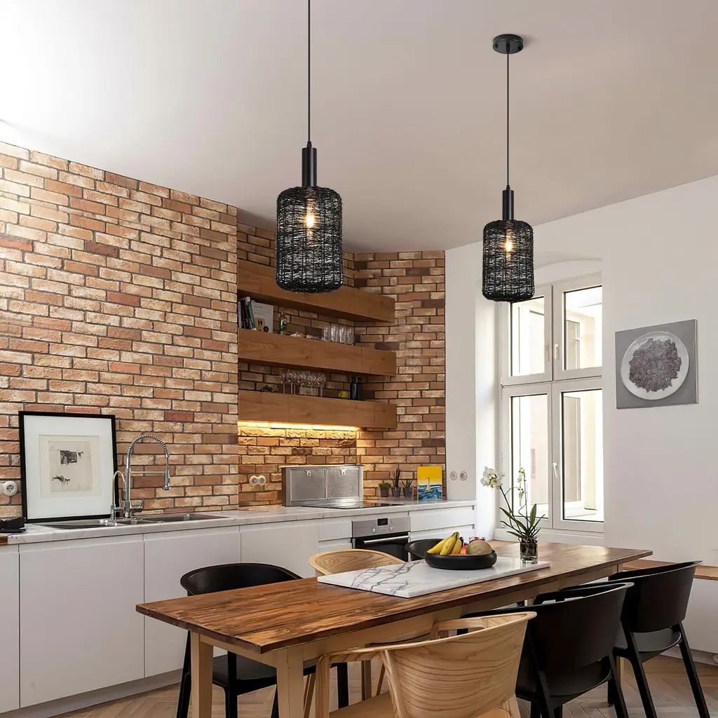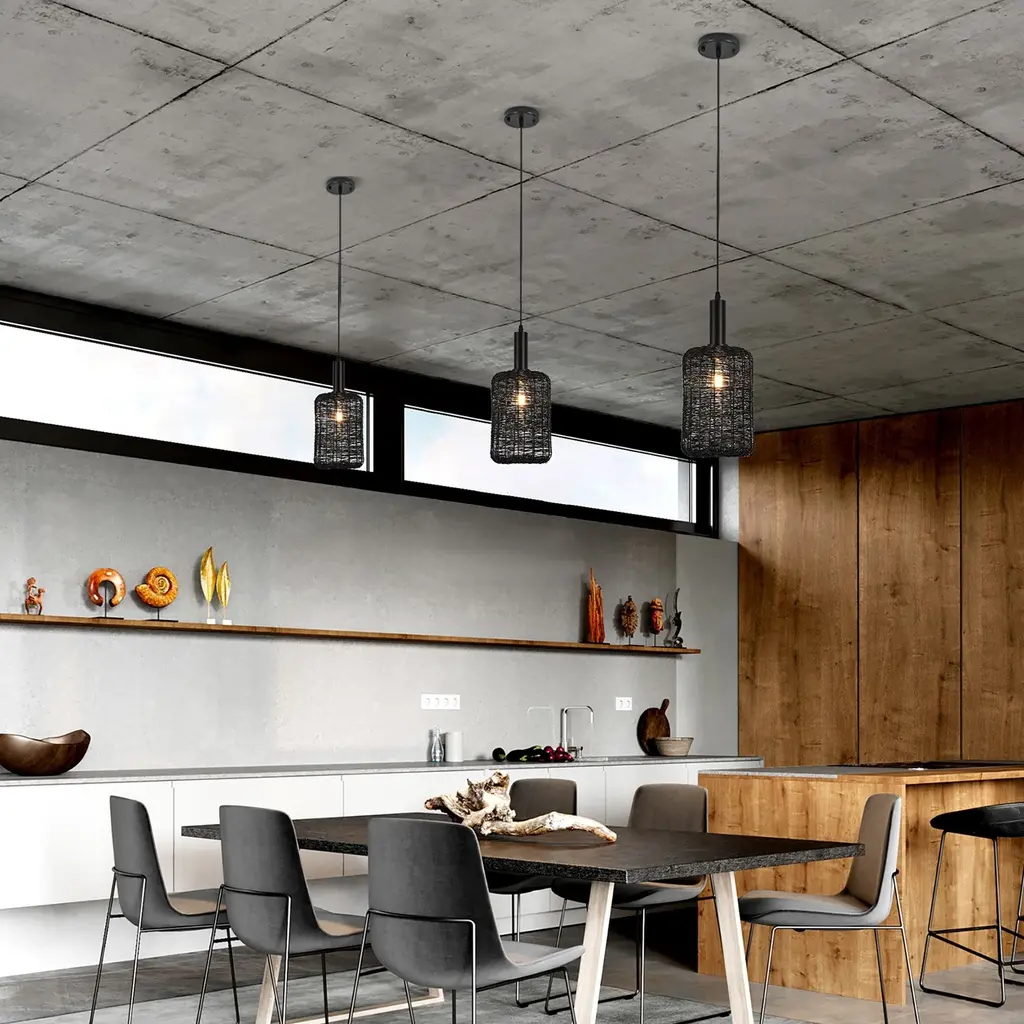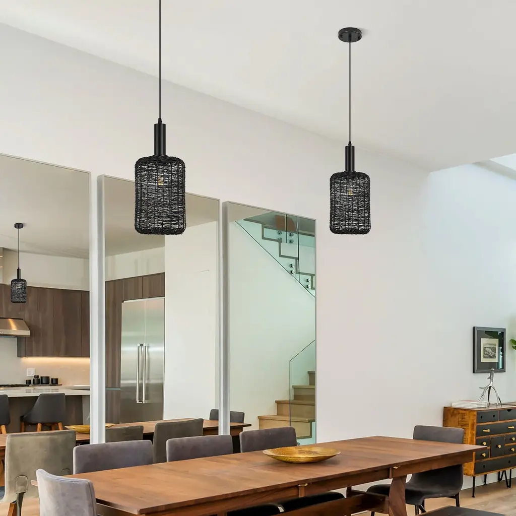 Detail:Add a touch of industrial elegance to your space with this meticulously crafted pendant light. Featuring a unique woven metal cage design, this pendant light casts a warm, inviting glow that enhances any room's ambiance. With its single E26 bulb socket (bulb not included), you have the freedom to select a bulb that best suits your lighting needs and style preferences. Ideal for dining areas, kitchen islands, or entryways, this versatile fixture brings a sleek yet rustic charm to both modern and traditional interiors. Upgrade your decor with this stylish pendant light and enjoy the perfect blend of form and function.Feature: