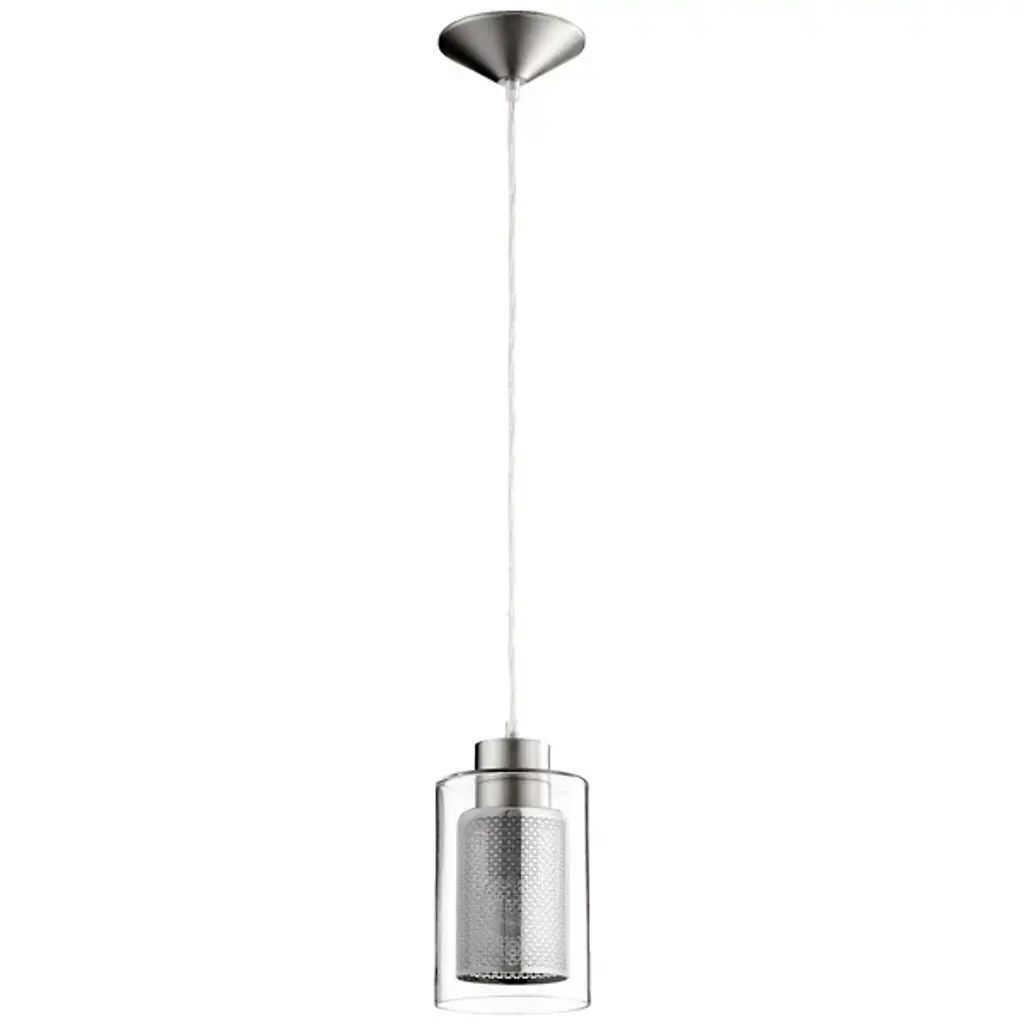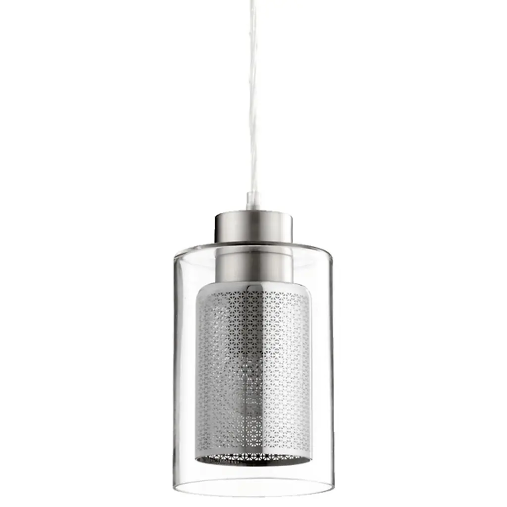 A prime example of contemporary design. The 1-Light Pendant from Quorum International will enhance the modern appeal of any room it hangs in. Its clean lines and minimalist aesthetics are created thanks to the inner diffuser that is made out of metal that has been perforated and the cylindrical outer diffuser that is crafted from clear glass. Ideally suited for installation above a kitchen island, dining table, or lounge area, this product provides beautifully layered lighting.
