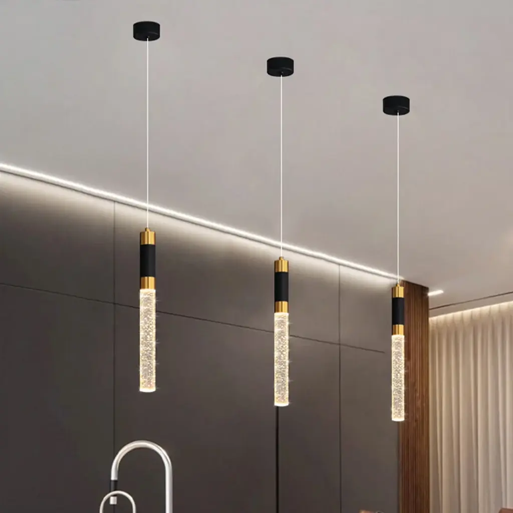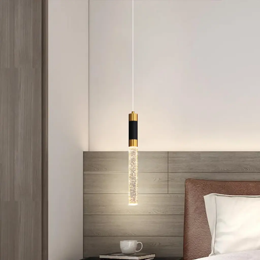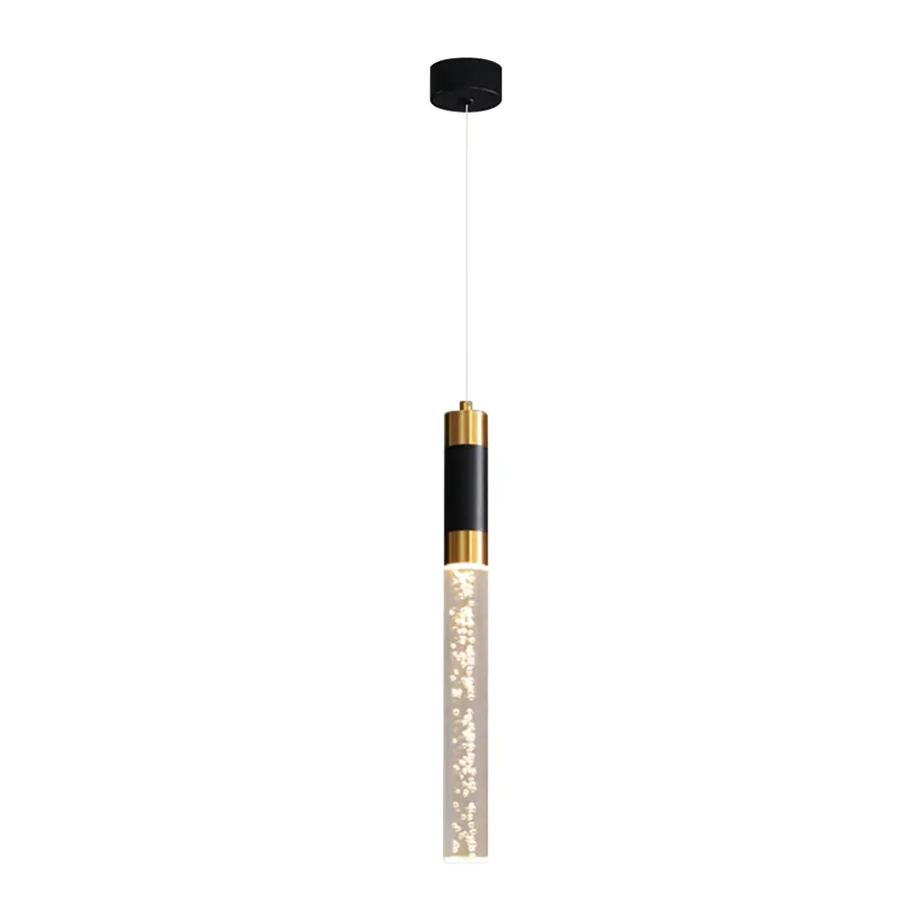 1-Light Single Mini Cylinder Led Island Pendant Light In Black & Gold With Acrylic Shade
