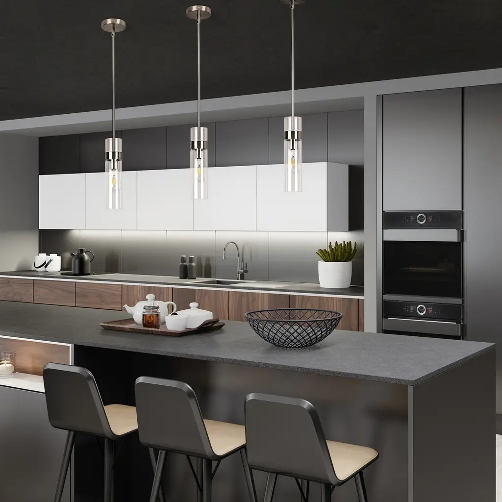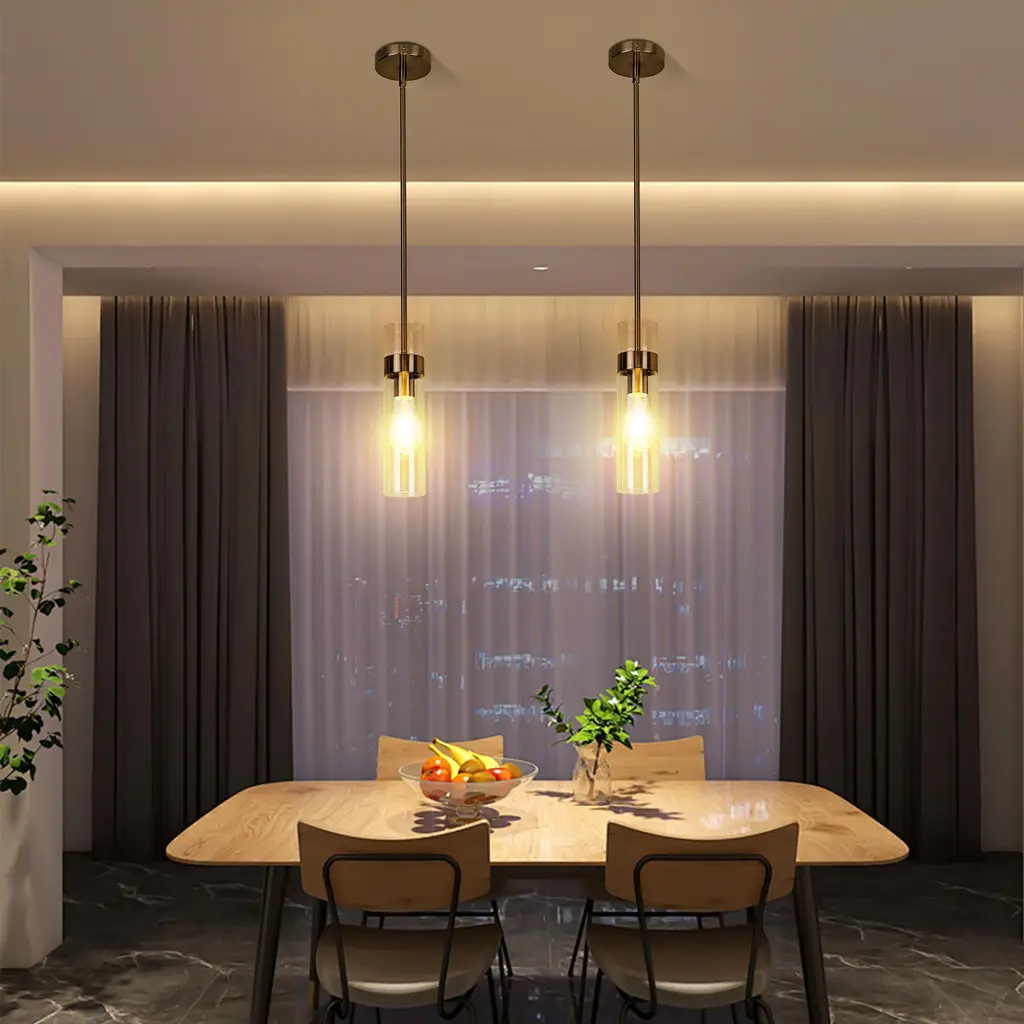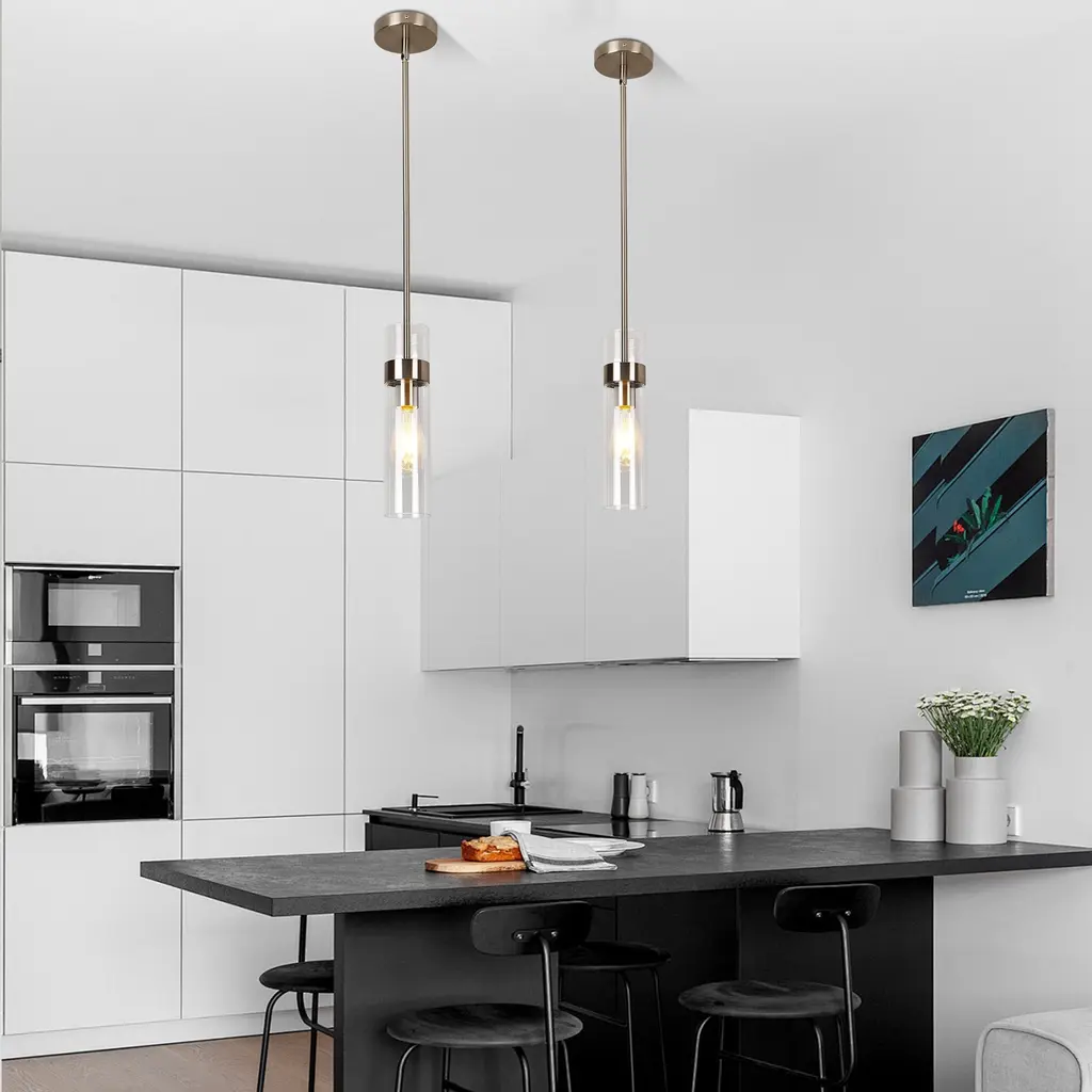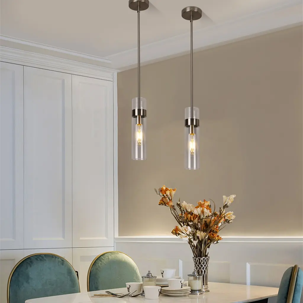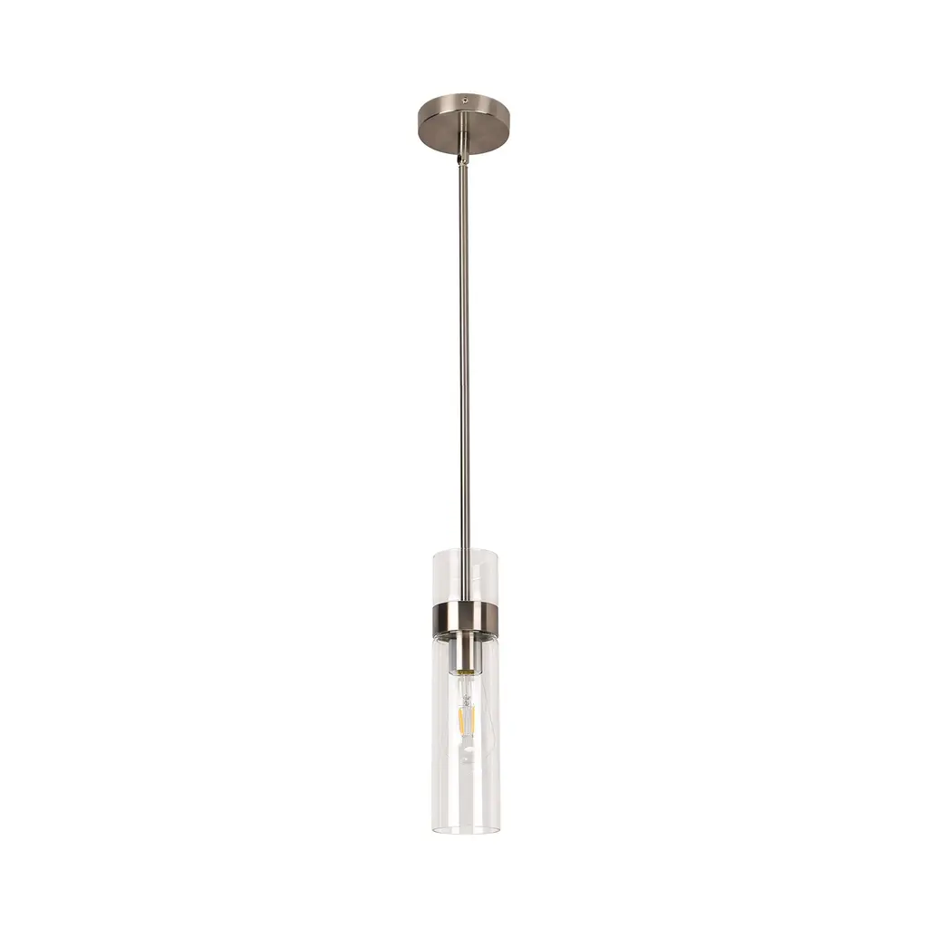 Detail:Illuminate your space with this elegant 1-Light Pendant, featuring a sleek and modern design that fits perfectly into any contemporary décor. Available in brass, silver, and black finishes, this pendant light adds a touch of sophistication to kitchens, dining rooms, or living spaces. The clear cylindrical glass shade offers a clean, minimalist look, while the adjustable rod allows for easy height customization to suit any ceiling type—flat or sloped. The single E26 bulb socket provides focused yet ambient lighting, making it ideal for various settings. Bulbs are sold separately, giving you the flexibility to choose the lighting tone that best fits your needs.Feature: