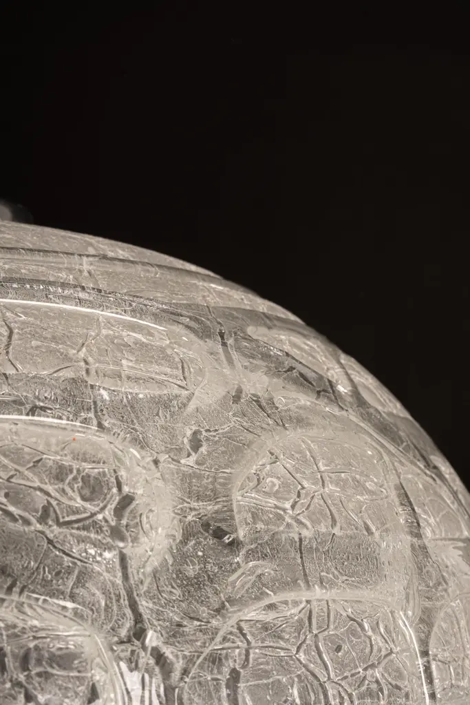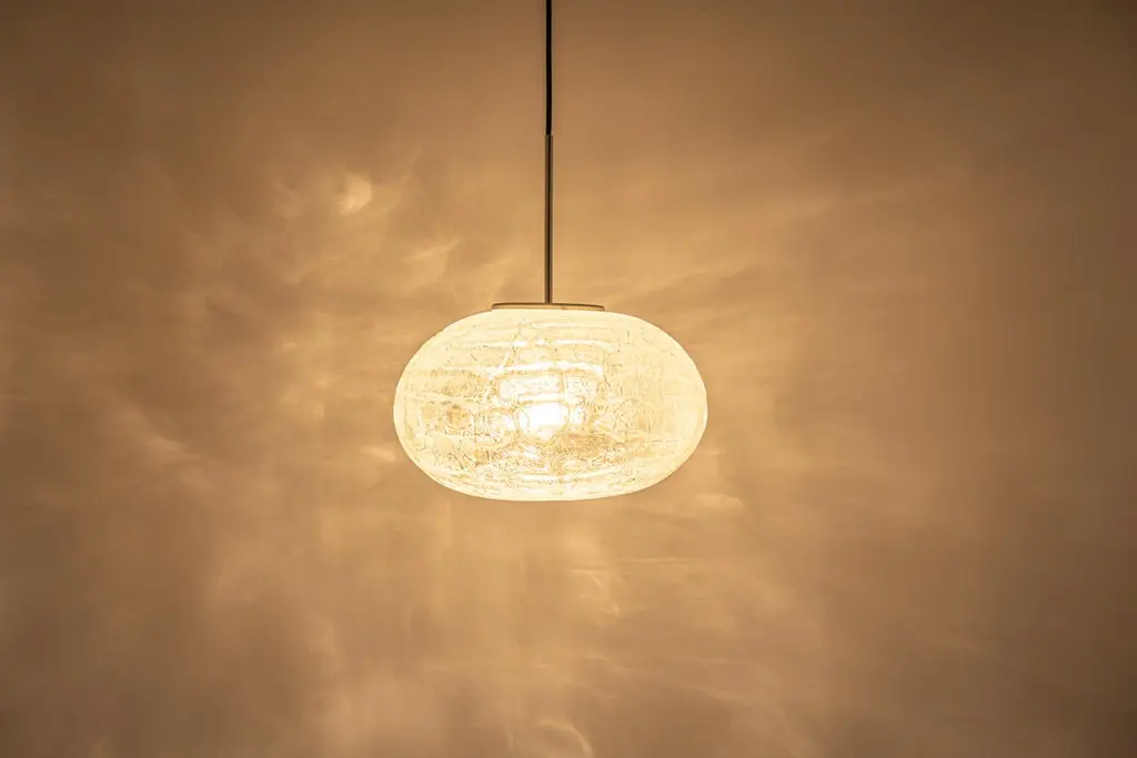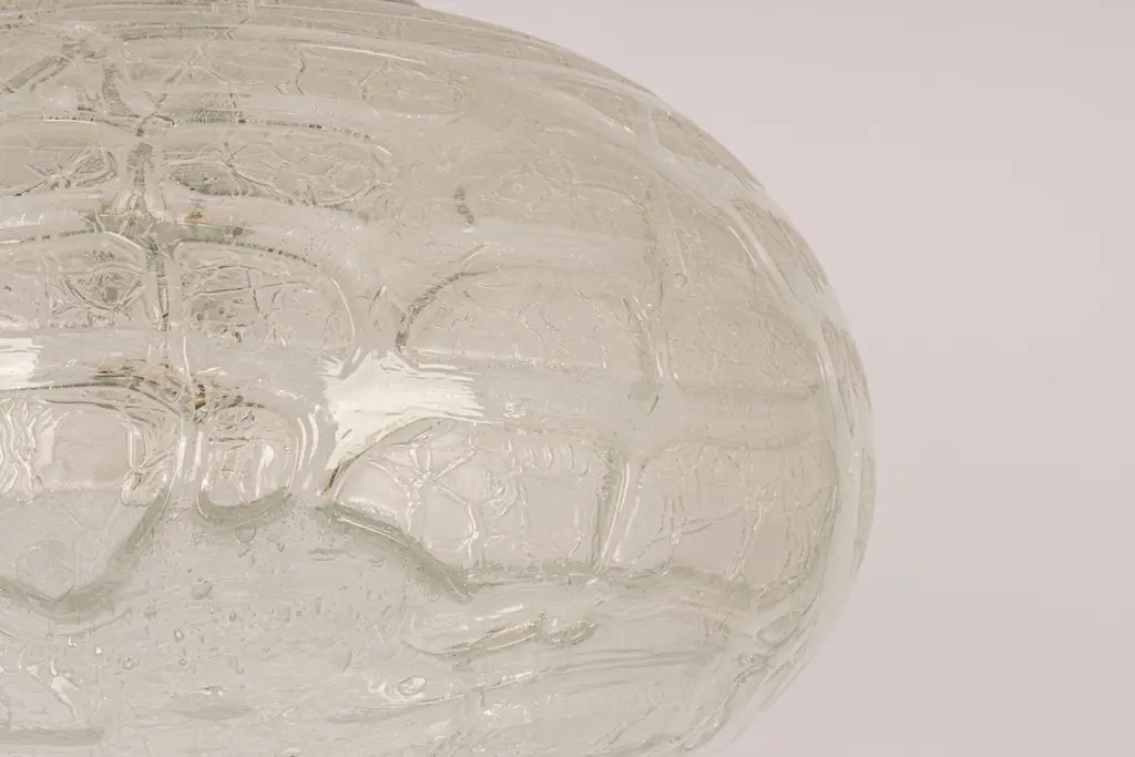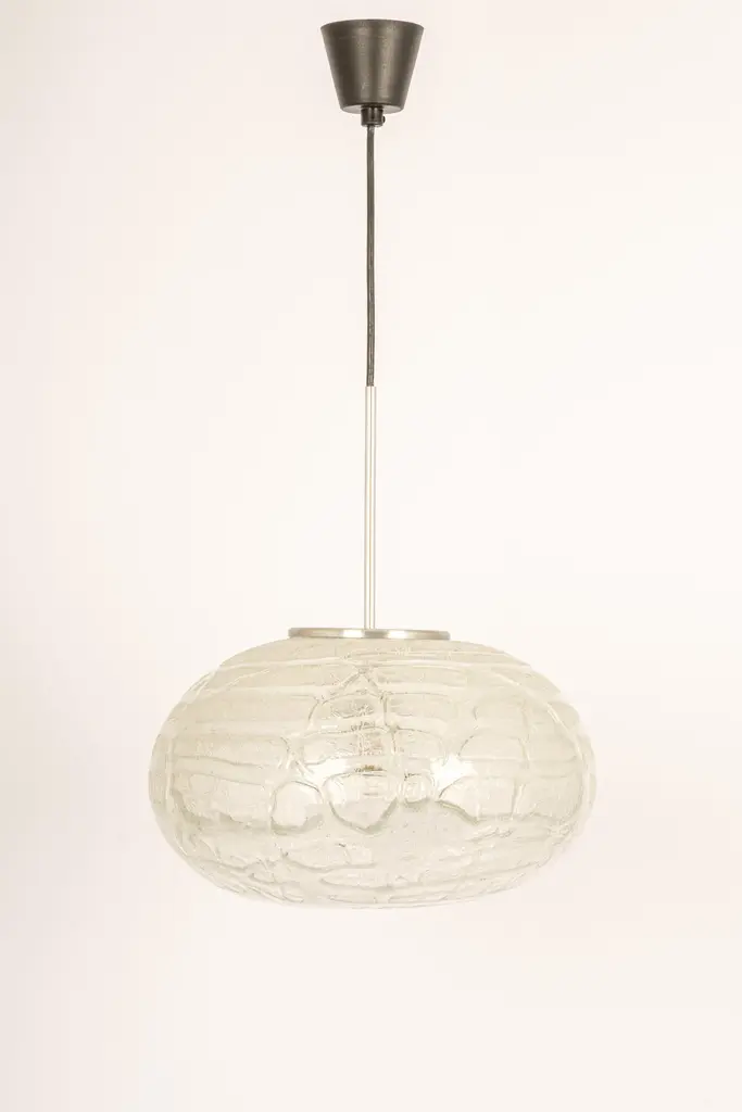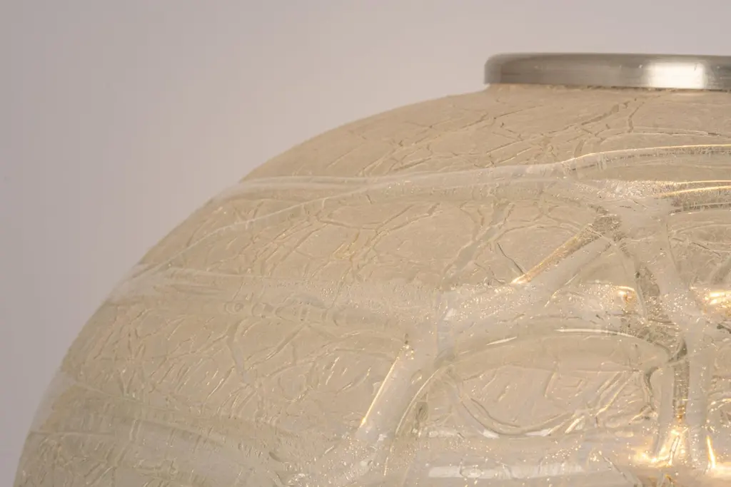 Doria ceiling light with large volcanic Murano glass ball.High quality materials, gives a wonderful light effect when it is on.Very good condition. Cleaned, well-wired, and ready to use. The fixture requires one standard bulb (E-27)Light bulbs are not included. It is possible to install this fixture in all countries (US, UK, Europe, Asia, Australia.)The current total height can be adjusted for higher or lower ceiling.The listed price is for one item.Two items are available.
