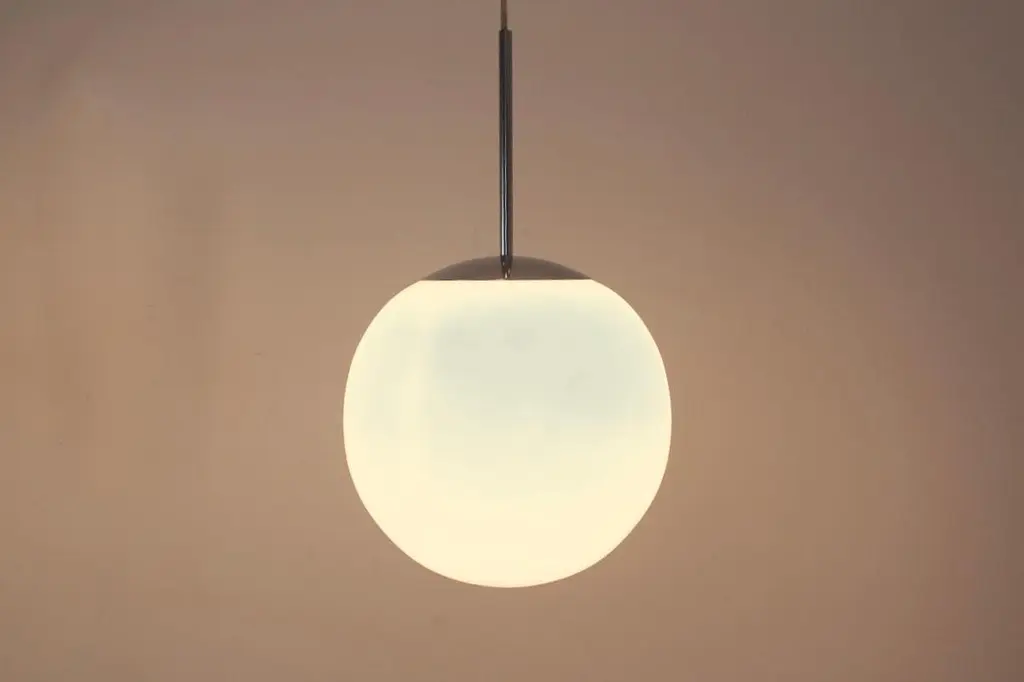 1 Of 20 Peill & Putzler Chrome And Opal Glass Pendants