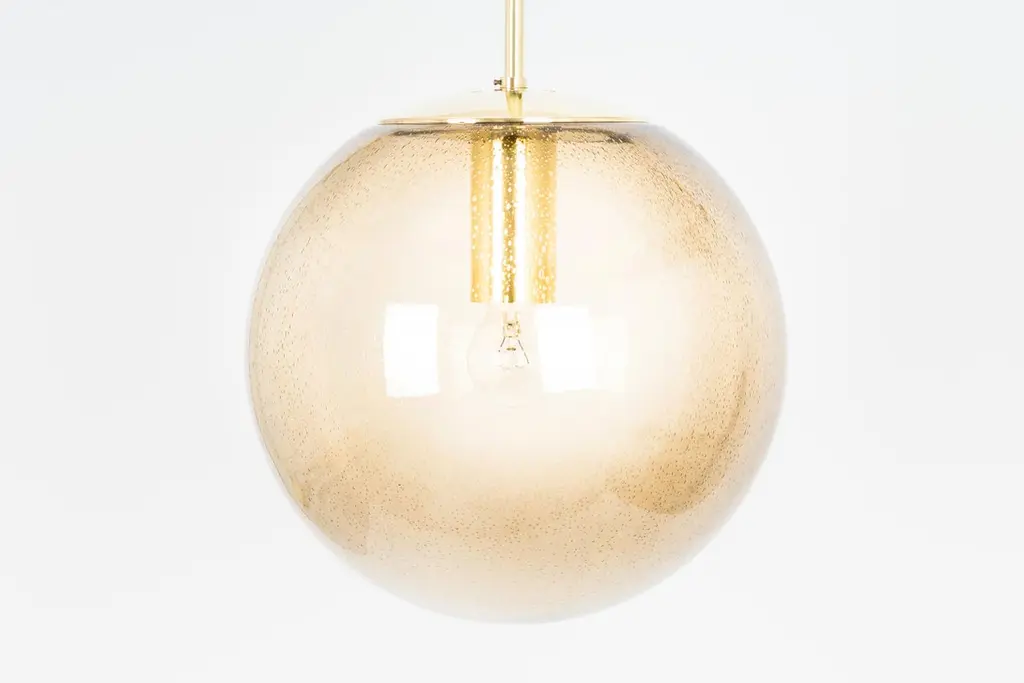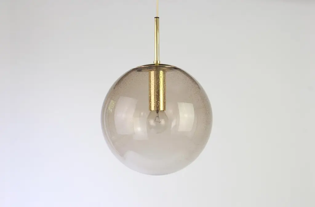 Large smoked glass ball pendant, manufactured by Limburg, Germany, circa 1970-1979.Sockets: One x E27 standard bulb.Light bulbs are not included. It is possible to install this fixture in all countries (US, UK, Europe, Asia, Australia.)With white or black cord.Measures: Diameter 30 cm, 12 inchesHeight (adjustable for higher or lower ceiling) current height 80 cmPerfect condition.