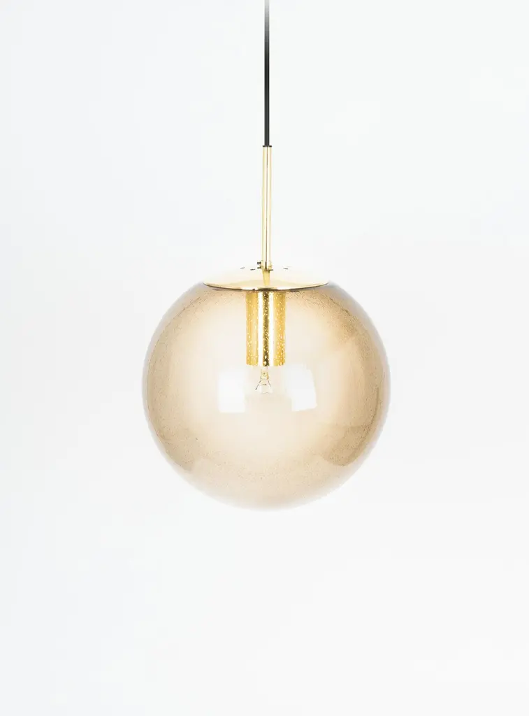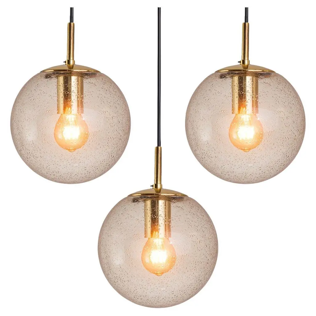 1 Of 6 Limburg Brass With Smoked Glass Ball Pendant, Germany, 1970s