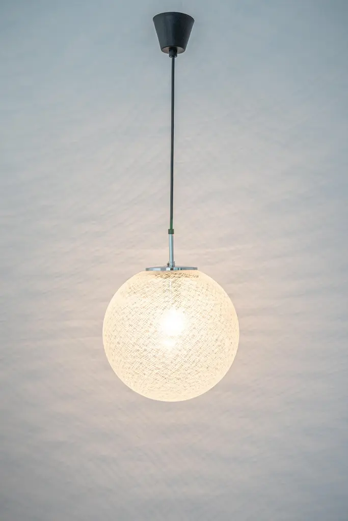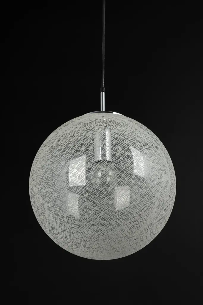 1 of 8 clear glass ball (hand-made) pendants, manufactured by Limburg, Germany, circa 1970-1979.Sockets: 1 x E27 standard bulbs.Light bulbs are not included. It is possible to install this fixture in all countries (US, UK, Europe, Asia, Australia,..)with white or black cord.The total Height (adjustable for higher or lower ceiling): current height: 80 cmVery good condition.