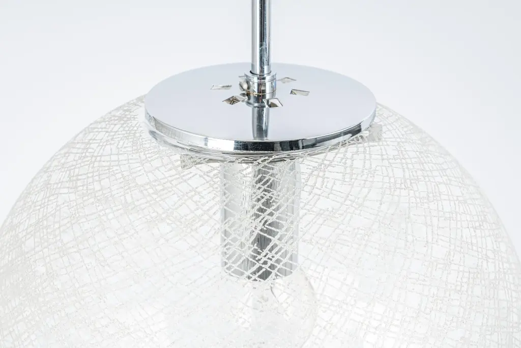 1 Of 8 Large Limburg Chrome With Glass Ball Pendant, Germany, 1970s