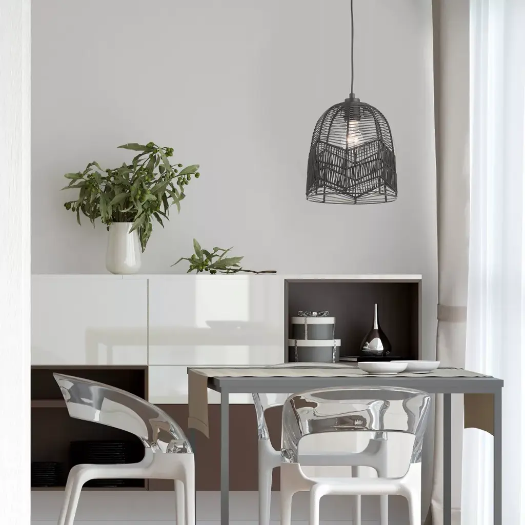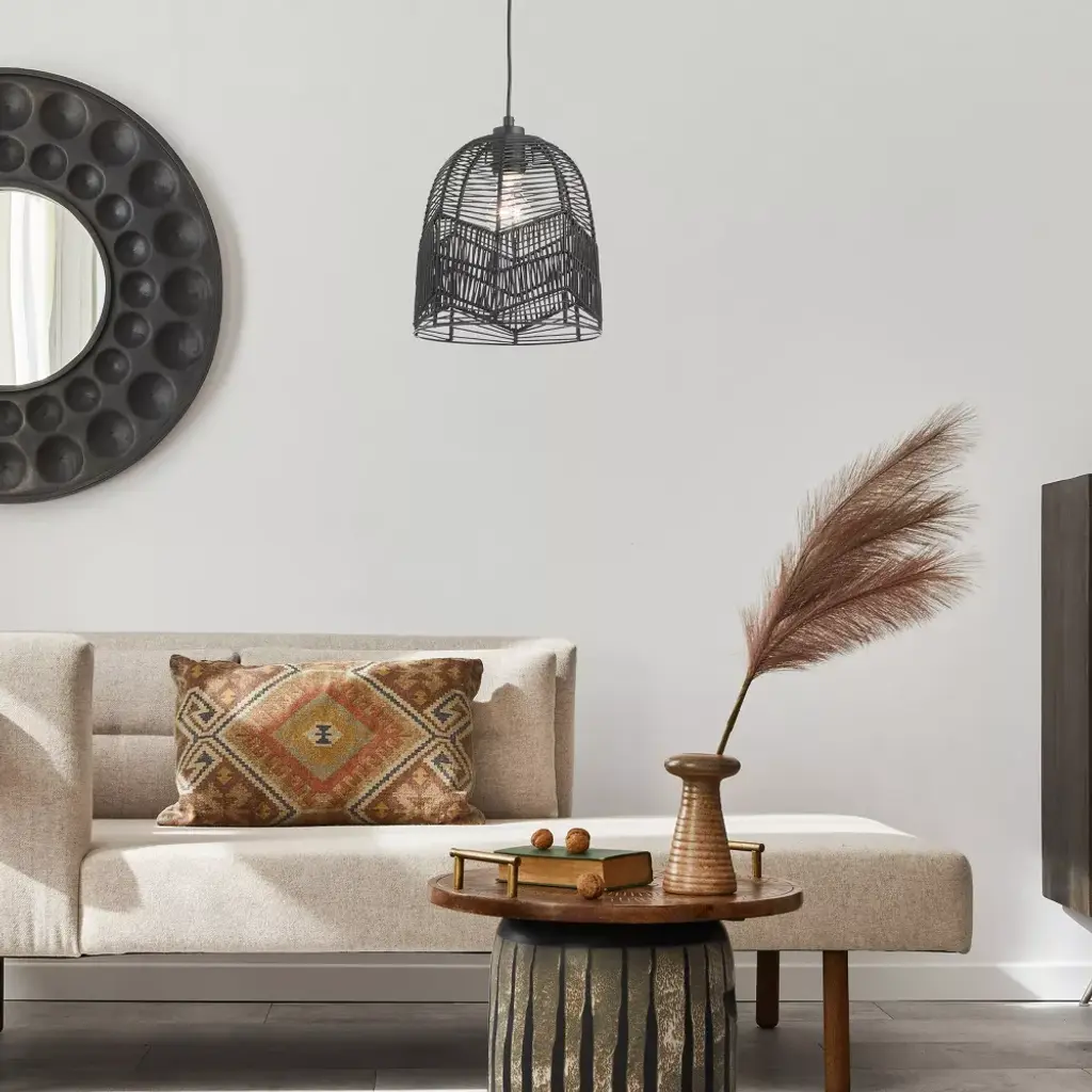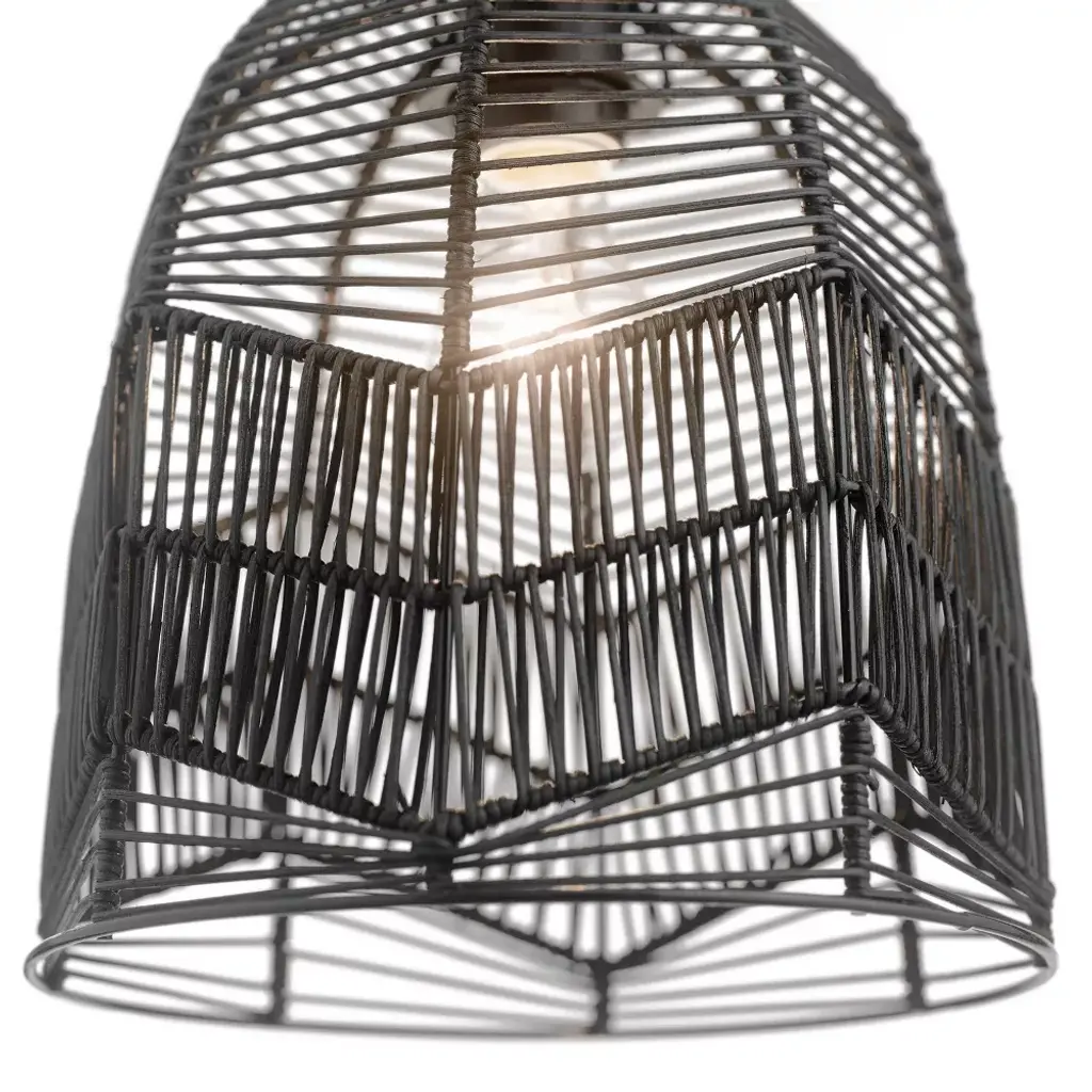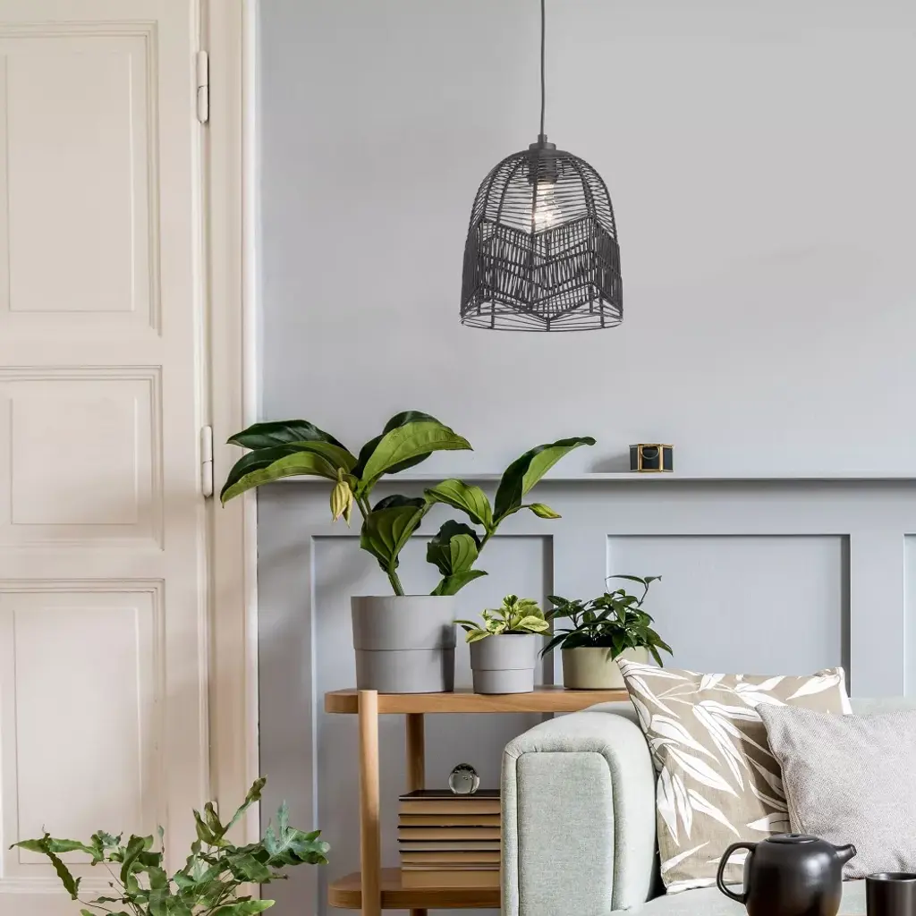 Bring relaxed modern style to a variety of spaces in your home with this 10" Zola Black Rattan Cloche Pendant Light. Featuring a black canopy, cord, fixture and shade, this chic pendant light combines the boho, beachy vibes of open-weave rattan with a modern sensibility thanks to the clean monochrome look. Compatible with LED, incandescent and CFL bulbs, it's a great choice for updating spaces from your mid-century modern living room to your contemporary open-concept kitchen. The adjustable-height design lets you find the perfect hanging height whether you're placing this cloche pendant light at a short distance from your ceiling or positioning for a dramatic drop above your dining table or kitchen island.