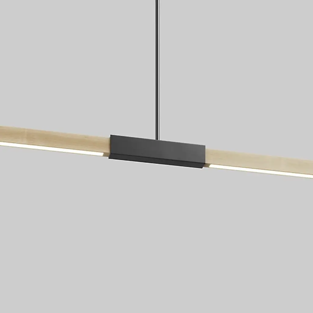 The 10 Foot LED Linear Pendant by Stickbulb is a simplistic and elegantly designed fixture for modern spaces. Suspended from a thin adjustable stem, a central clamping mechanism holds a slender wooden beam. Within the beam are two integrated energy-efficient LED lights that emit a softly diffused light. The metal clamp allows the beam to be oriented for ambient uplight or focused downlight for a customizable and adaptable lighting solution in a minimal and sustainably-sourced fixture.